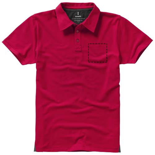 Tonal logo op achterzijde. Contrast gekleurde halfmoon. Satijn nektape. Heren heeft knopenlijst met 3 knopen, Dames heeft knopenlijst met 4 knopen. Contrast gekleurd v-stuk op zijsplit. Pick-Steek details. Dubbel Piqué van 95% Katoen en 5% Elastaan. 200 g/m²