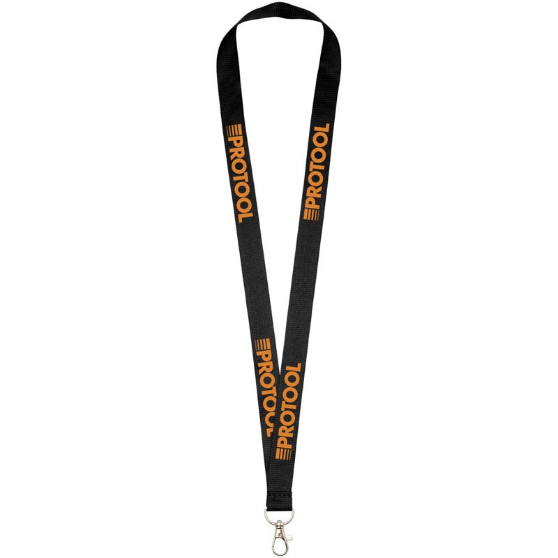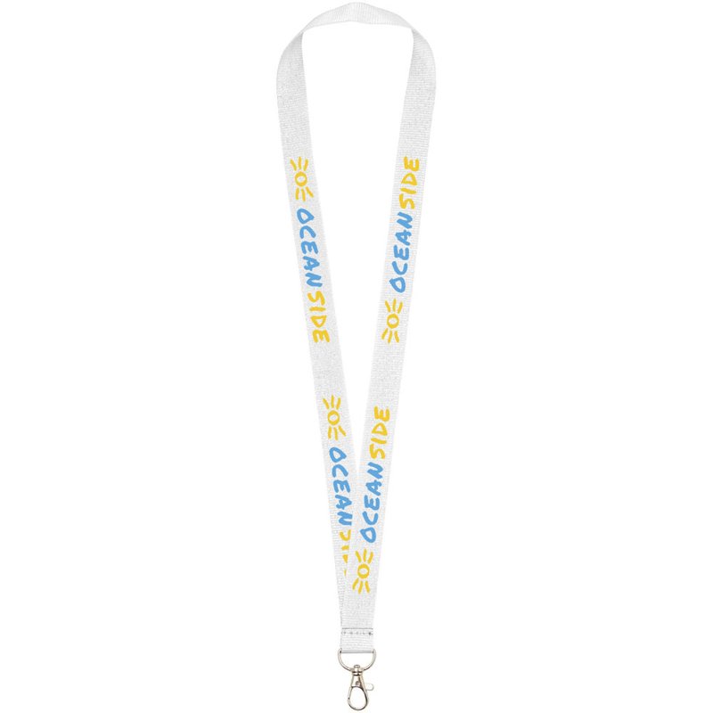 Instapmodel lanyard in een groot aantal kleuren. Heel veel waar voor uw geld en indrukwekkende logoruimte. Hoogwaardige ovalen haak met musketonsluiting, ideaal voor badge, ID-kaart of sleutels. Geen instelkosten voor tweede locatie bij identiek bedrukkingspatroon aan beide zijden.