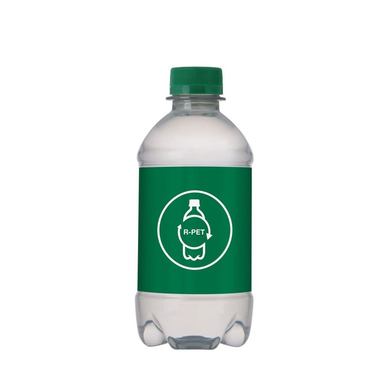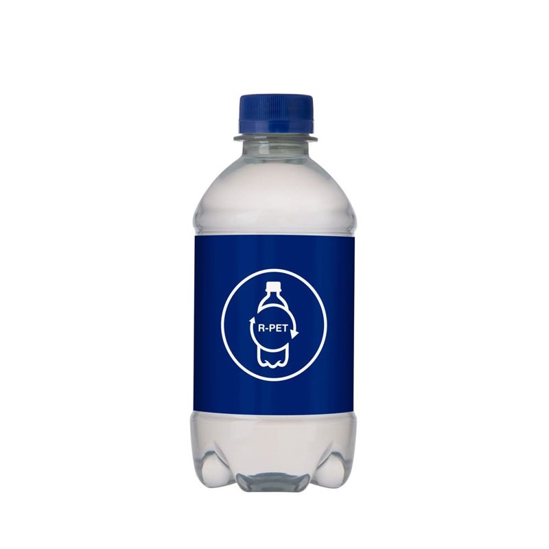 Vier uw dorstige momenten! Uw eigen waterflesjes voorzien van full colour label en maak het geheel af met een dop in de kleur naar keuze. 330 ml bronwater in een transparante fles.