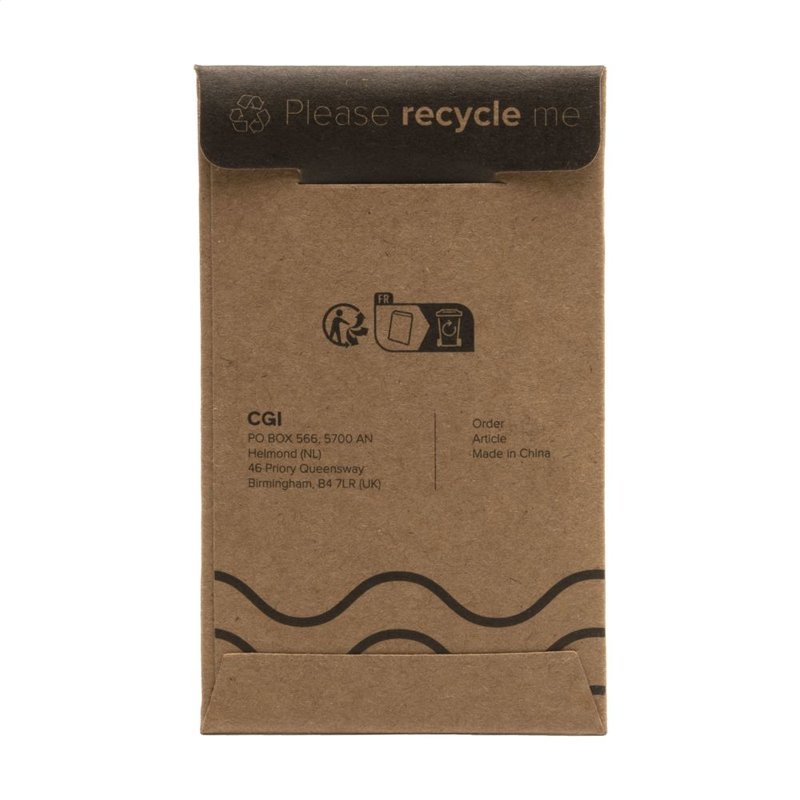 Matmetalen sleutelhanger gecombineerd met sterk geweven nylon aan stevige sleutelring. Per stuk in doosje.