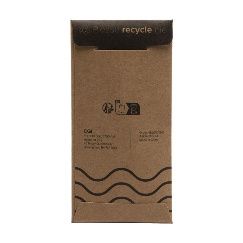 Sleutelhanger in mat metalen uitvoering. Met beukenhouten inleg. Aan stevige, metalen sleutelring. Per stuk in doosje.