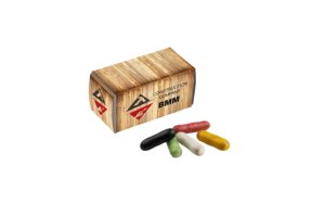 Wit blik met Delftsblauw motief, bedrukking d.m.v. full colour bedrukt deksel. Gevuld met 8 stroopwafels.