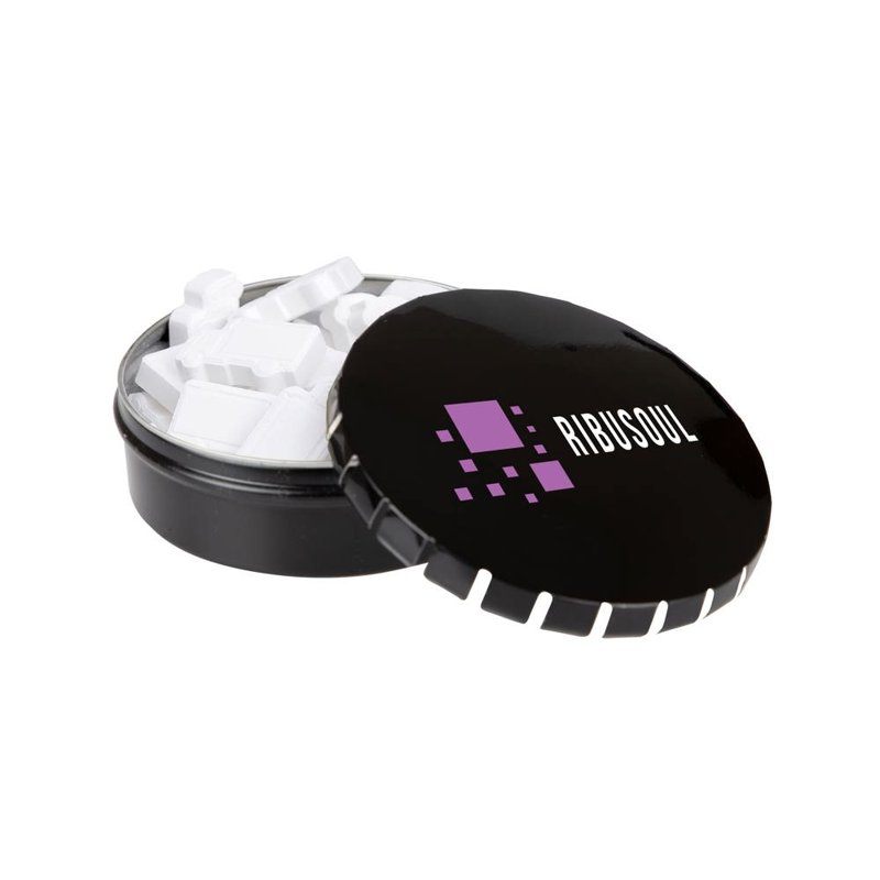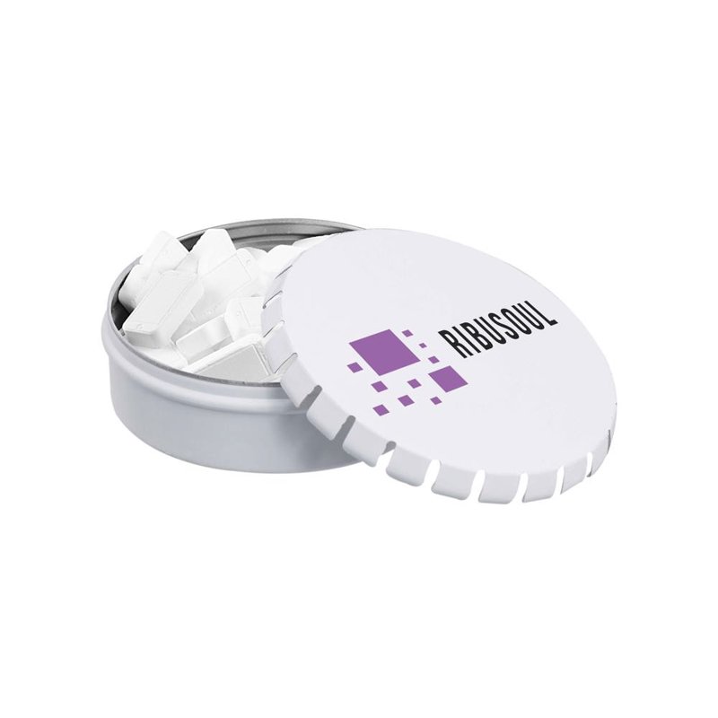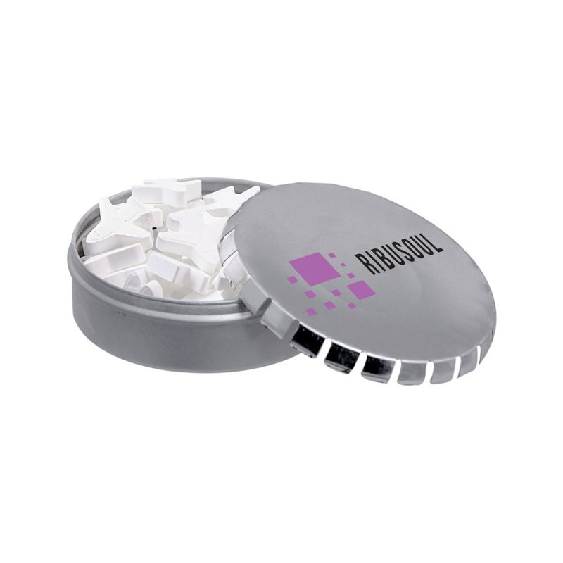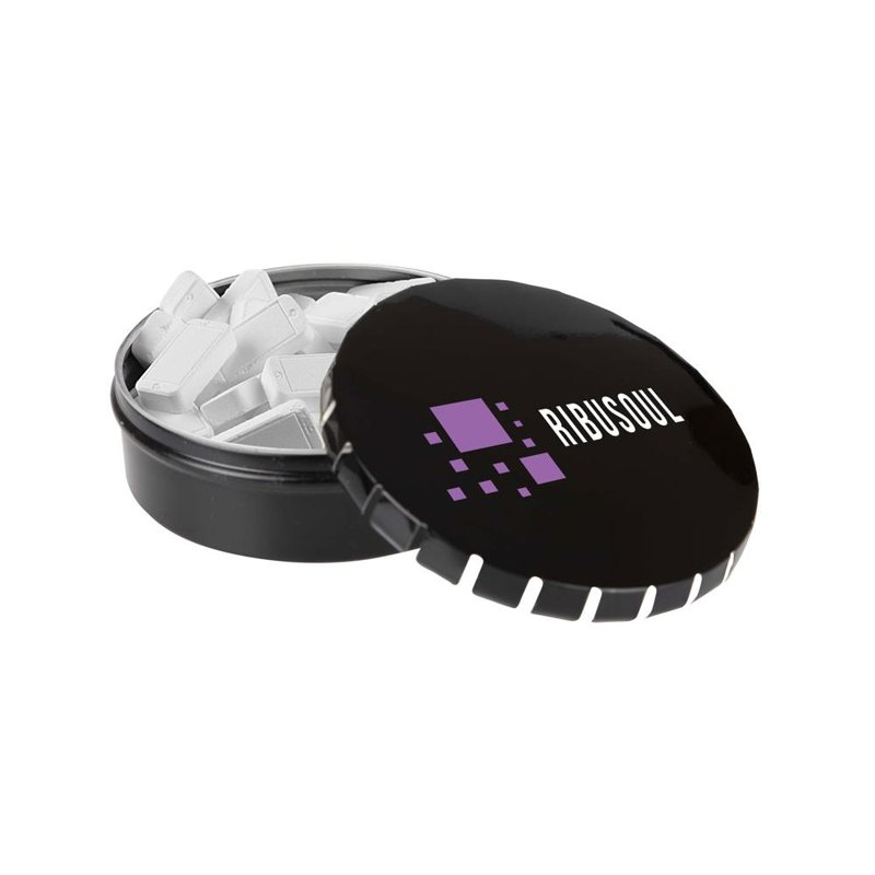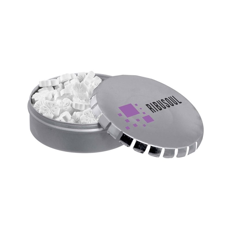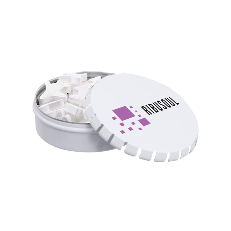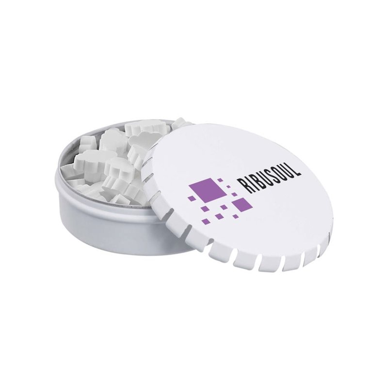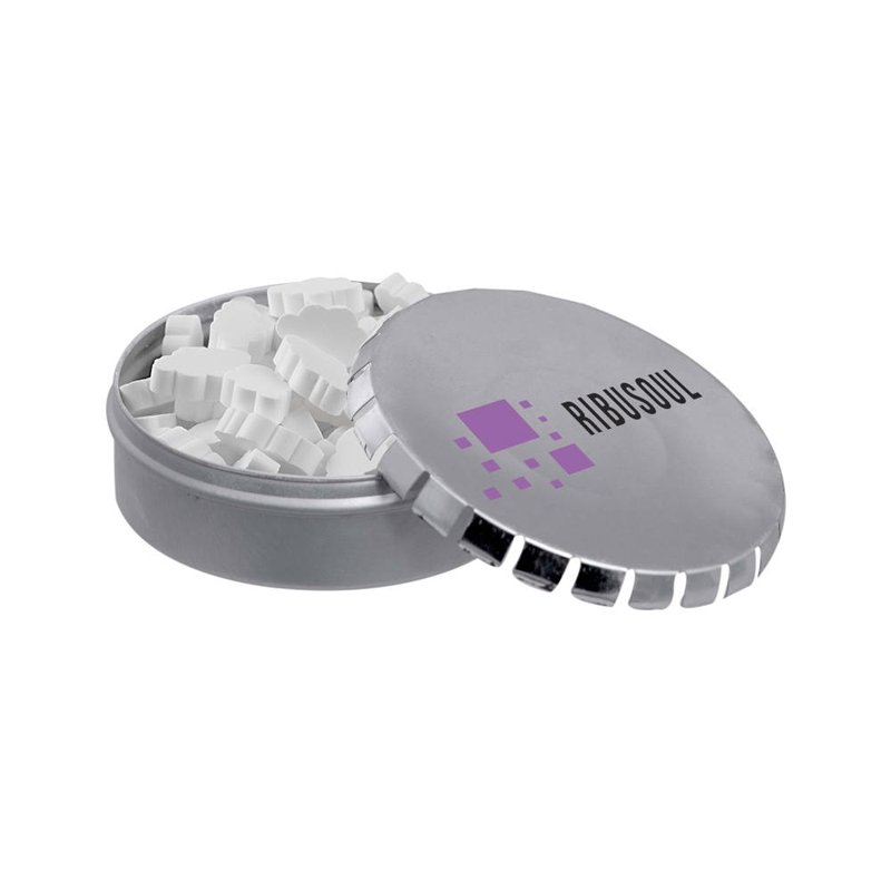 Bedrukt mini clic-clac blikje met 50 gram vorm pepermunt