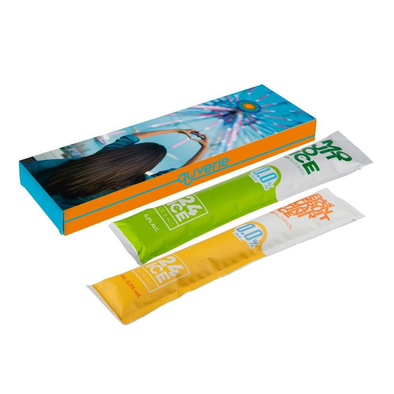 Het gepersonaliseerde doosje is voorzien van 2 verkoelende "Mocktail" ijsjes. Keuze uit 0,0% Mojito of Strawberry Daiquiri.