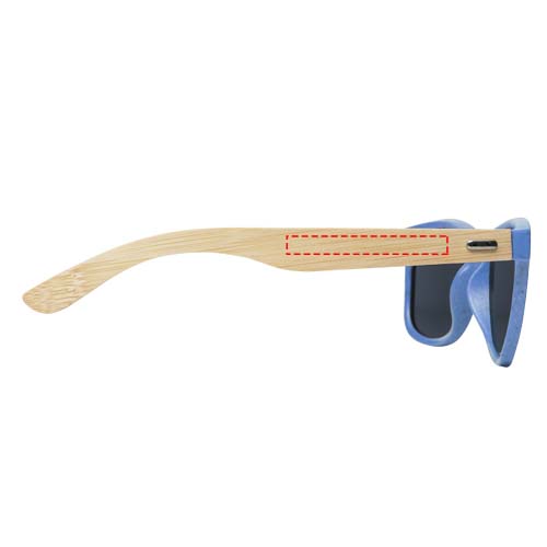 Deze duurzame retro-ontworpen zonnebril is het ideale relatiegeschenk tijdens zomerfestivals, evenementen of andere zonnige buitenactiviteiten. Het frame is gemaakt van een mix van plastic en bamboe, waardoor het gebruik van nieuwe kunststoffen wordt verminderd. Hij is verkrijgbaar in verschillende trendy kleuren. De armen met een lichte en comfortabele pasvorm zijn gemaakt van bamboe dat afkomstig is van duurzame, milieuvriendelijke en maatschappelijk verantwoorde bronnen. Deze bril voldoet aan EN ISO 12312-1, heeft UV400-glazen die zijn geclassificeerd als categorie 3, waardoor het de perfecte keuze is voor bescherming tegen fel zonlicht. Lasergraveren wordt aanbevolen als een duurzame decoratieoptie.