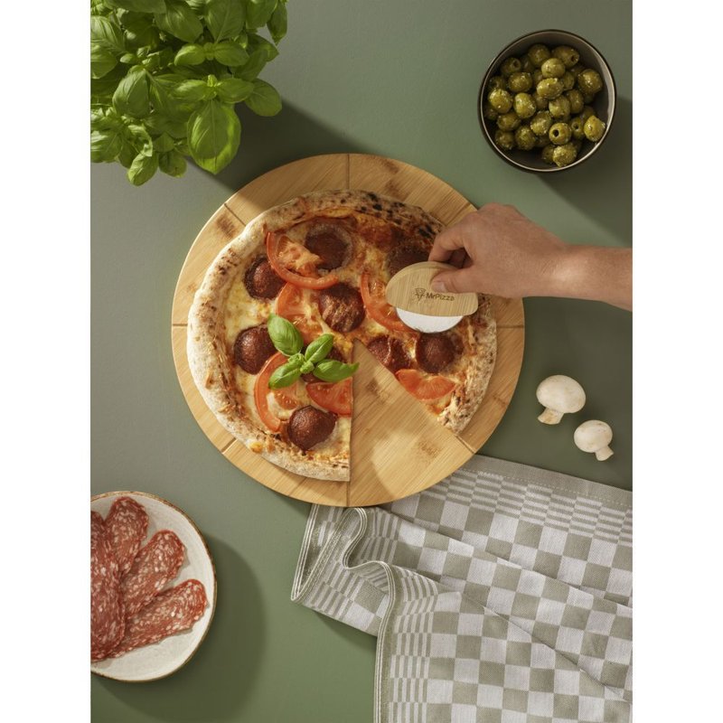 Deze pizzasnijder combineert een scherp RVS snijwiel met een stijlvolle, ergonomische bamboe handgreep. Dankzij het compacte design ligt hij comfortabel in de hand en snijdt hij moeiteloos door elke pizza, zonder dat de toppings verschuiven. Perfect voor thuisgebruik en makkelijk op te bergen na gebruik. Per stuk verpakt.