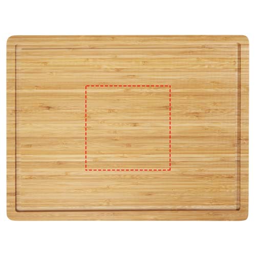 Bamboe snijplank voor steak met een groef rond de rand om te voorkomen dat er vloeistof op het aanrecht terechtkomt. De snijplank is gemaakt van bamboe dat wordt ingekocht en geproduceerd volgens duurzame normen.