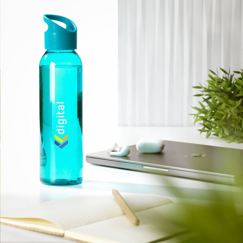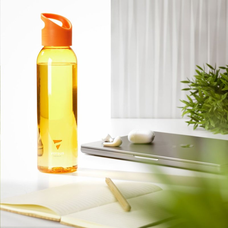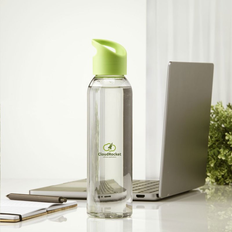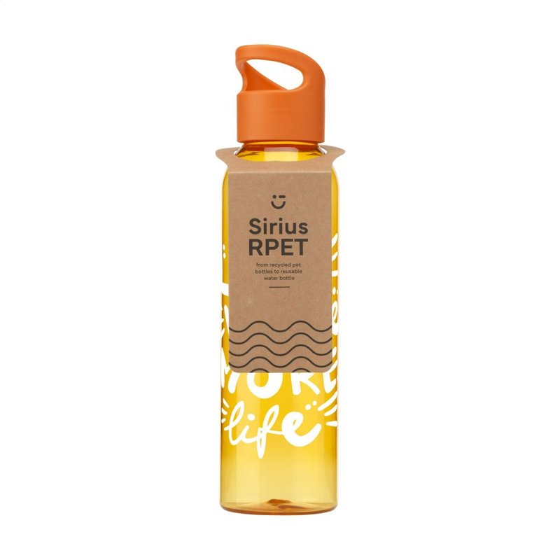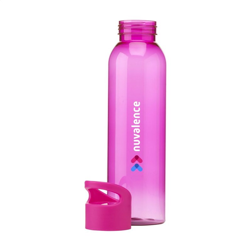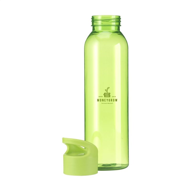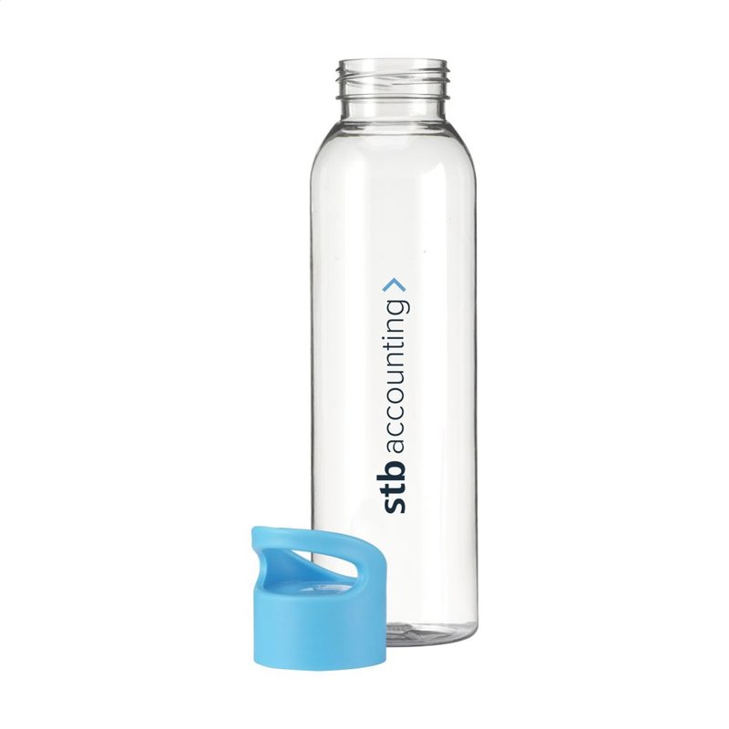 WoW! Luxe waterfles van helder RPET. Met praktische, kunststof schroefdop. Milieuvriendelijk, BPA-vrij, lekvrij, duurzaam en herbruikbaar. Niet vaatwasserbestendig. Inhoud 650 ml.