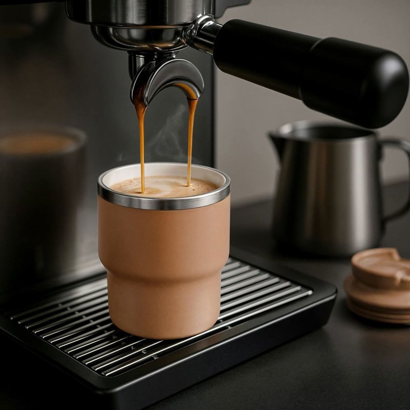 De T-mug is waar duurzaamheid stijl ontmoet. Gemaakt van gerecyclede materialen, houdt deze dubbelwandige geïsoleerde mok je drankjes tot 4 uur warm en tot 8 uur koud. Met een perfecte grootte van 280ml past hij naadloos onder je koffiezetapparaat. De innovatieve keramische coating aan de binnenkant zorgt ervoor dat je drankje zijn ware smaak behoudt zonder enige metaalachtige nasmaak. Of je nu thuis bent, op het werk of onderweg, verbeter je drinkervaring met deze compacte schoonheid. Verpakt in een geschenkdoos. De certificering garandeert een volledig gecertificeerde toeleveringsketen van het gerecyclede materiaal en de totale gerecyclede inhoud is 95% op basis van het gewicht van het artikel.