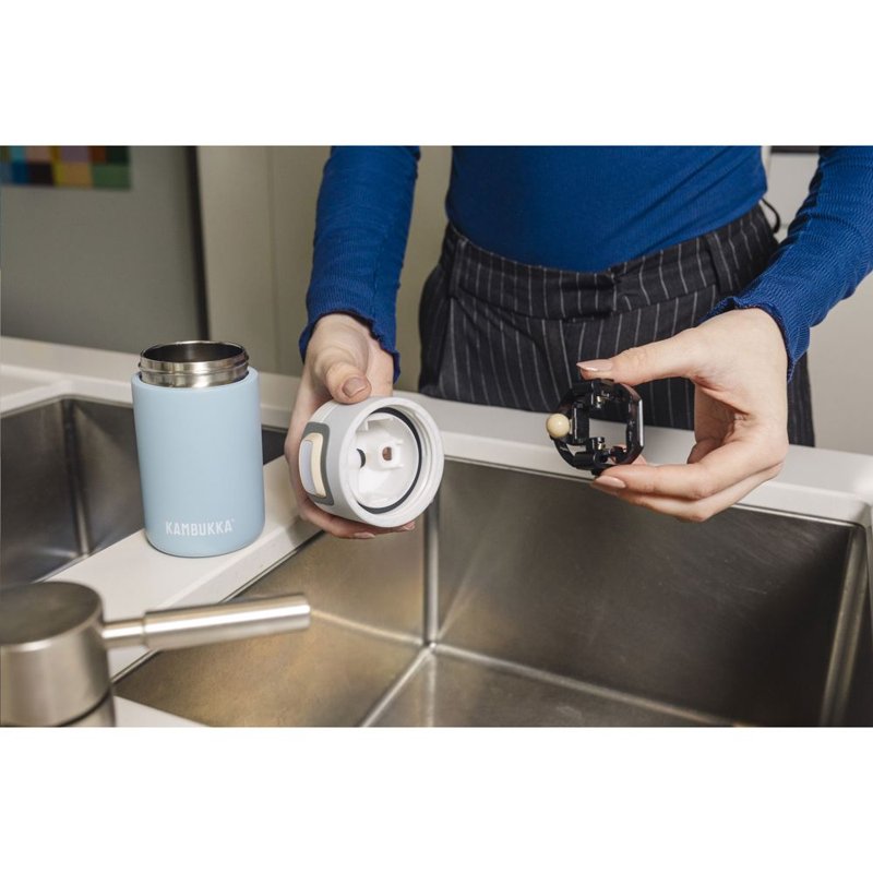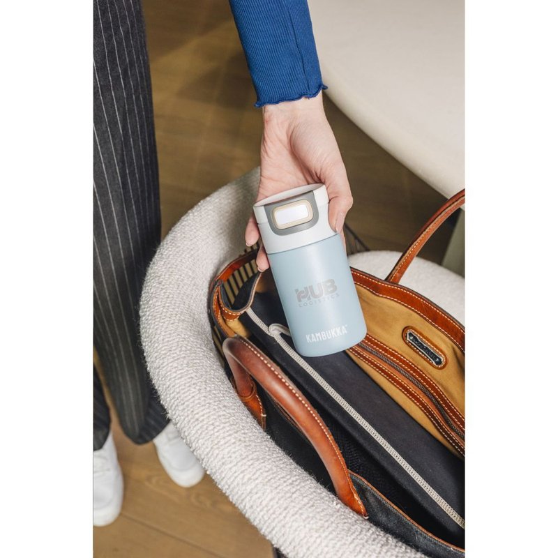 De ideale thermosbeker voor onderweg van het merk Kambukka® • excellente kwaliteit • fraaie vormgeving • handig en klein formaat • vacuümgeïsoleerd 18/8 RVS • BPA-vrij • houdt dranken tot 5 uur warm en tot 11 uur koud • 3-in-1 deksel met 2 drinkposities; even drukken en snel een slok nemen of volledig openen om zonder knoeien, net zo comfortabel te drinken als uit een mok • gemakkelijk te reinigen dankzij Snapclean®; met één handeling verwijder je het binnenste, vaatwasserbestendige mechanisme • universeel deksel; past ook op andere Kambukka® drinkflessen • het deksel is hitte- en vaatwasserbestendig • antislipbodem • 100% lekvrij • inhoud 300 ml.