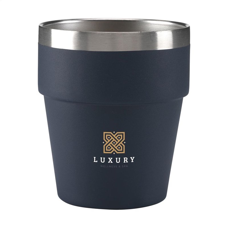 WoW! Dubbelwandige beker van 100% gerecycled RVS. Volledig recyclebaar. Deze tijdloze beker is stapelbaar en dus ruimtebesparend. Geschikt voor de meeste koffieapparaten. Niet vaatwasserbestendig. RCS-gecertificeerd. Totaal gerecycled materiaal: 100%. Inhoud 300 ml. RVS kan vele malen gerecycled worden terwijl de kwaliteit van het materiaal grotendeels behouden blijft. Door het gebruik van gerecycled RVS worden minder nieuwe grondstoffen gebruikt. Dit betekent minder energieverbruik en minder gebruik van water. Een verantwoorde keuze.