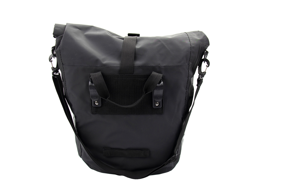 Deze robuuste fietstas (± 20L) is geheel waterdicht door de getapete & gelaste naden en de praktische rolltop sluiting. Perfect voor iedereen die met de fiets naar werk of school gaat. De tas heeft een verstevigd achterpaneel en is gemakkelijk aan de bagagedrager te bevestigen. Dankzij de afneembare schouderriem kun je de tas ook comfortabel over de schouder dragen. Door de grote opening vind je gemakkelijk boeken, (sport) kleding of andere attributen. Laptop of tablet berg je veilig op in de gepolsterde sleeve, met handig extra ritsvak. De grote reflecterende prints maken je ook ’s avonds extra zichtbaar