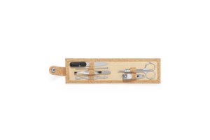 Manicureset met 6 accessoires en etui gemaakt van vilt RPET, het resultaat van de combinatie van de recyclingprocessen van plastic materialen samen met de millenniumtechniek van viltproductie, resulterend in een eco-trendmateriaal dat niet alleen van gerecyclede oorsprong is, wordt ook recyclebaar. Metalen accessoires van roestvrij staal met zwarte afwerking: schaar, pincet, nagelknipper, nagelvijl en 2 nagelriemverwijderaars. Met drukknoopsluiting en kenmerkend RPET-label. 6 Accessoires Manicure Set Lacky 1638