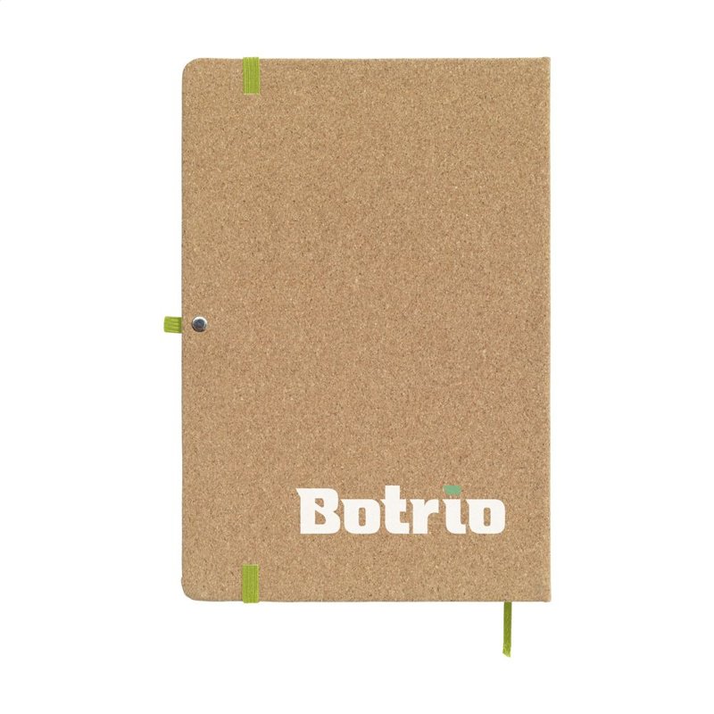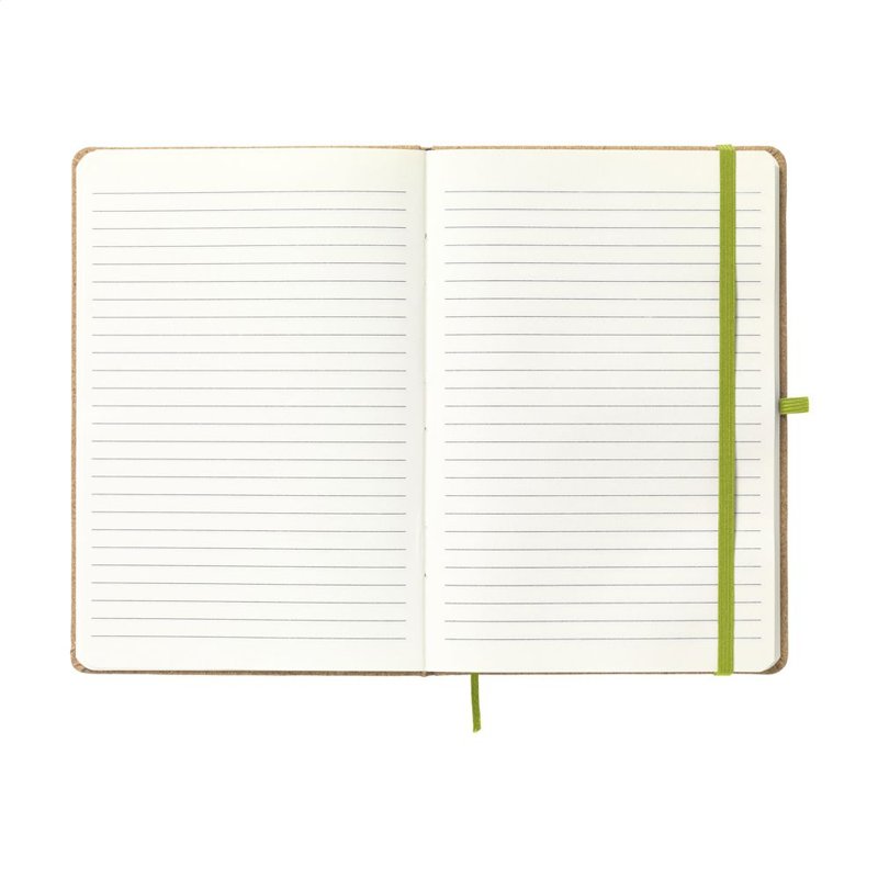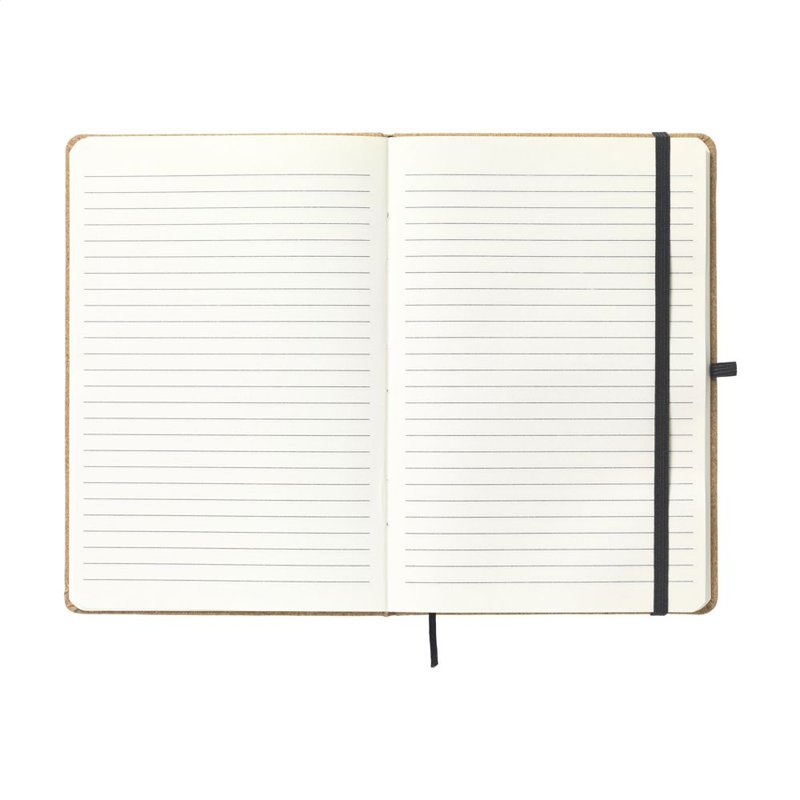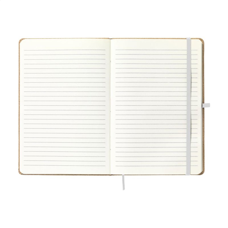 Milieuvriendelijk, A5 formaat notitieboekje van kurk. Met ca. 80 vel/160 pagina's crèmekleurig, gelinieerd, FSC-gecertificeerd papier (70 g/m²). Met handige penlus, sluitelastiek en leeslint.