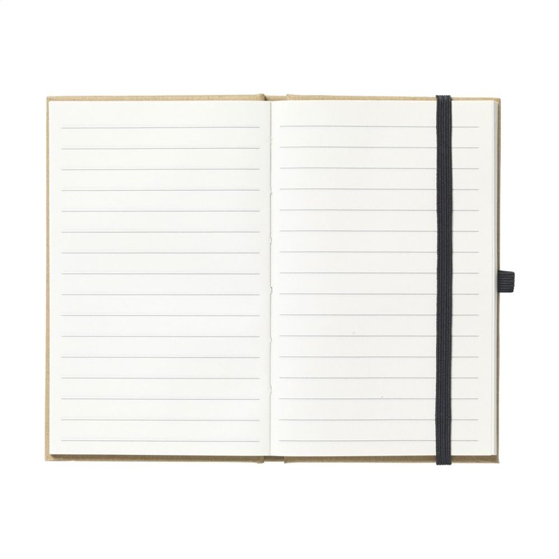 Milieuvriendelijk, A6 formaat notitieboekje van gerecycled materiaal. Met ca. 80 vel/160 pagina's crèmekleurig, gelinieerd, FSC-gecertificeerd papier (70 g/m²), handige penlus en elastische sluiting.