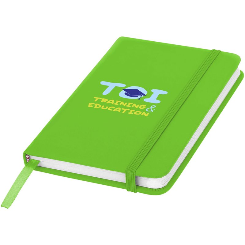 Het Spectrum notitieboekje is niet alleen onmisbaar op kantoor, maar is ook een geweldig item om een merk te promoten. Het notitieboek met harde kaft bestaat uit karton dat is bekleed met een zacht aanvoelende PVC-hoes. De 96 gelinieerde, verantwoorde vellen van 60 g/m² zijn ideaal voor het noteren van snelle ideeën of lange notities. Het A6 referentieformaat is praktisch, want het past probleemloos in de gemiddelde tas en is gemakkelijk vast te houden. Het lint van de boekenlegger en de elastische sluiting zijn in dezelfde kleur.