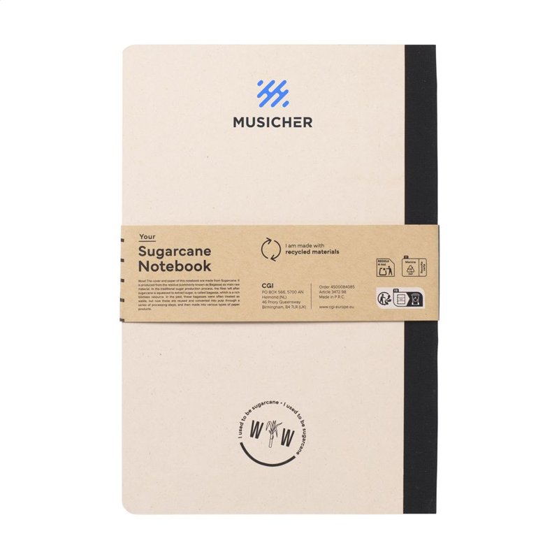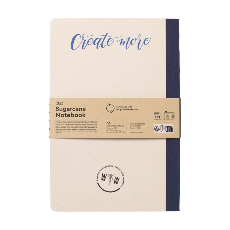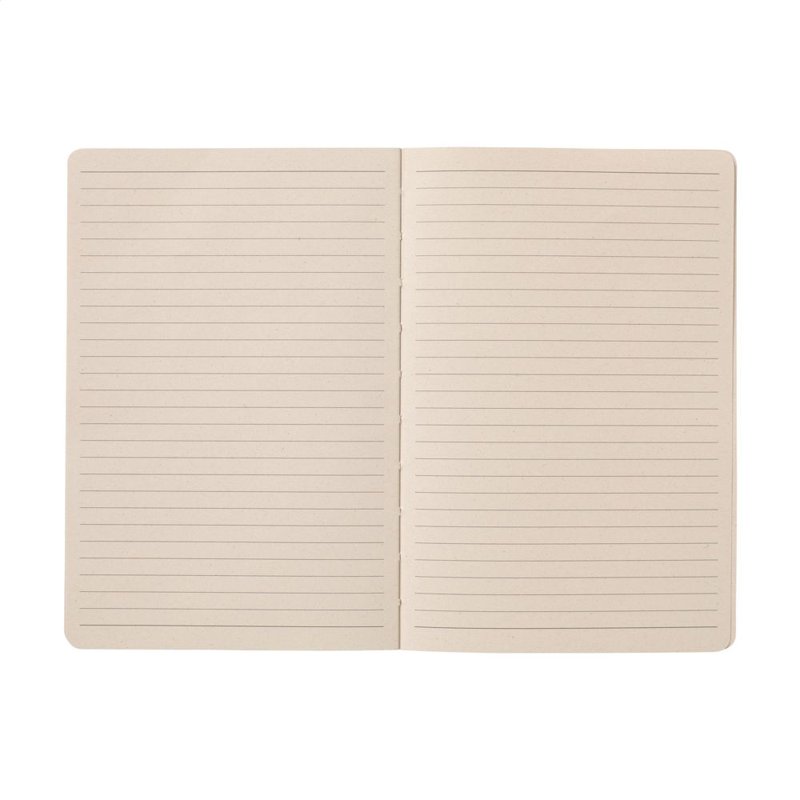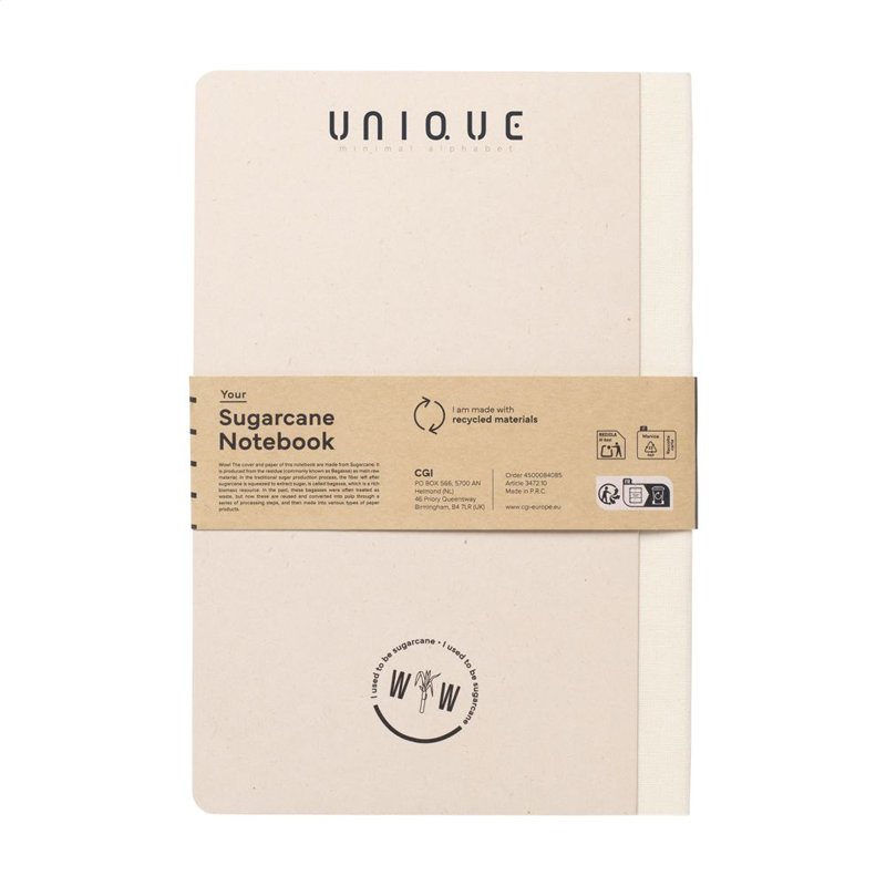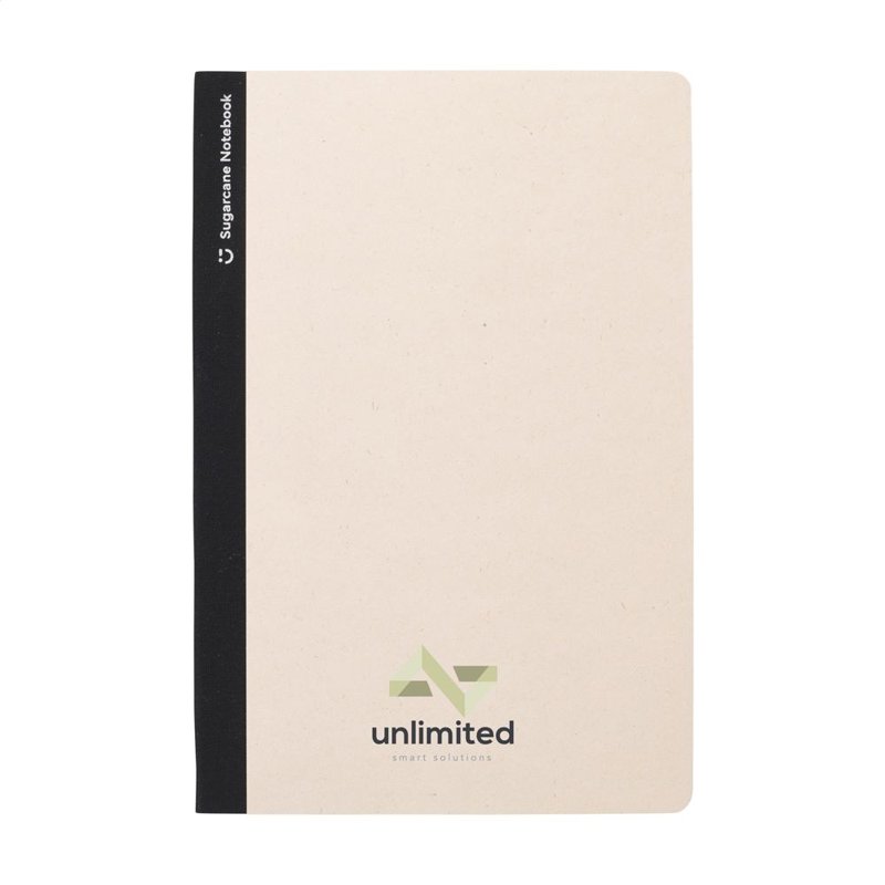 WoW! Exclusief notitieboekje in A5-formaat, gemaakt van het gerecycled afval van de suikerrietplant. Met hardcover en 80 vel/160 pagina's gelinieerd papier (100 g/m²). De hardcover en het papier zijn FSC® gecertificeerd. Het papier, waarin kleine vezels zichtbaar zijn, heeft een mooie lichtbruine kleur. Dit benadrukt het gebruik van natuurlijke materialen. Na de oogst van de suikerrietplant blijven de wortels van de plant in de grond en worden de stengels en bladeren verwerkt tot een residu dat gebruikt wordt voor het maken van papier. Een suikerrietplant haalt tijdens de groei CO2 uit de lucht en kan wel tot 10 jaar oud worden