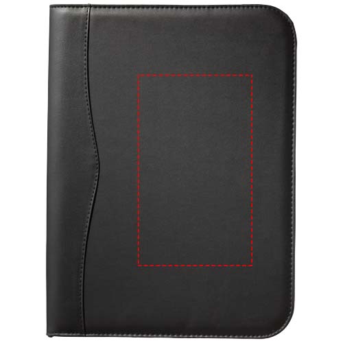 Het perfecte item waarmee elke medewerker indirect bijdraagt aan een grotere naamsbekendheid van elk merk: de Ebony portfolio. De A4-formaat portefeuille bevat een handig vak plus een ritsvak voor het opbergen van documenten. Daarnaast heeft het een 20-pagina's gelinieerd notitieblok plus een pennenlus (pen en accessoires niet inbegrepen). Sluit de portefeuille met de rits om de inhoud netjes en goed beschermd te houden. De portefeuille is gemaakt van duurzaam imitatieleer en biedt voldoende ruimte voor grote logo's.