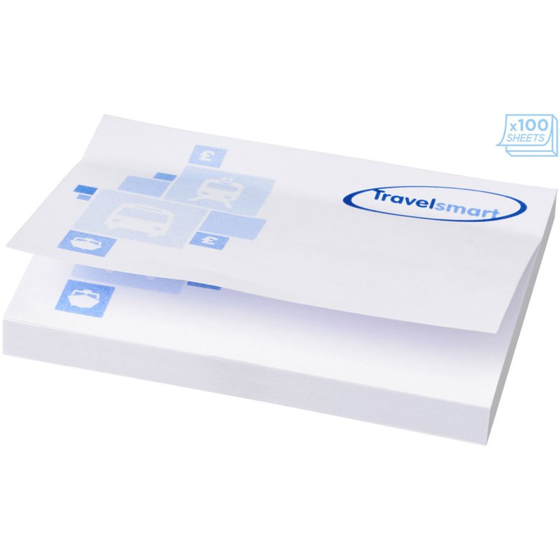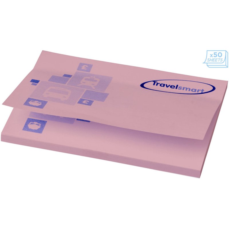 Sticky-Mate® sticky notes. Standaard model bestaat uit 50 vellen zelfklevend 80 g/m2 papier in een keuze van kleuren. Full colour print beschikbaar op elk vel. Beschikbaar in 3 formaten (25/50/100 vellen).