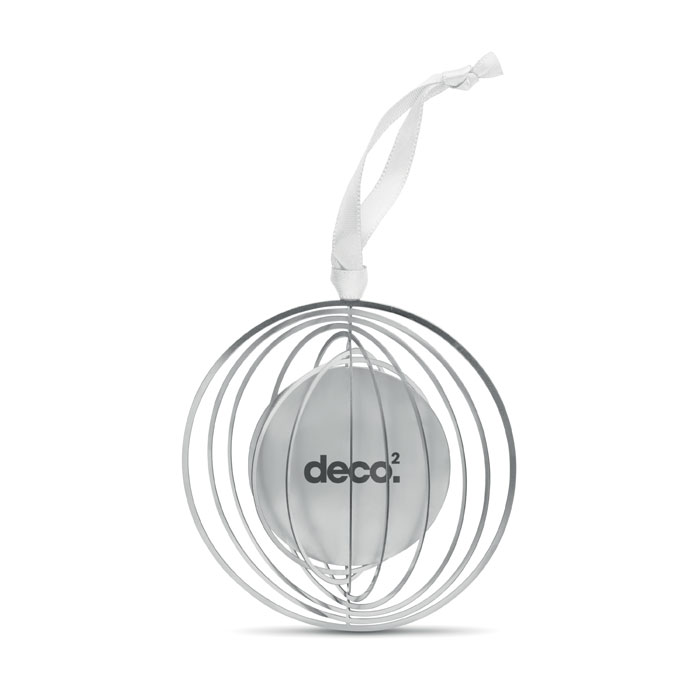 Cirkelvormige kerstdecoratie van RVS met lintje, verpakt in een geschenkenvelop. Eenvoudig tot kerstbal te vouwen.