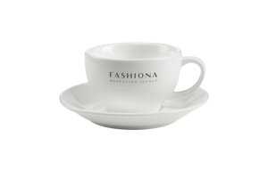 Kop en schotel van kwalitatief hoogwaardig porselein. Strak vormgegeven in conisch model. Bedrukking op schotel mogelijk. Afmeting: Ø80x65 mm. Inhoud: 18 cl.