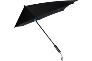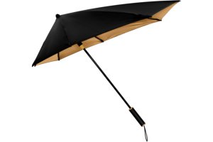 ST-40 STORMaxi aërodynamische opvouwbare stormparaplu. Deze vernieuwde versie van onze stormparaplu is getest in windtunnels en trotseert gemakkelijk windsnelheden tot 80 km/h. Het hoogwaardige doek is voor 100% gemaakt van gerecyclede PET-flessen.
