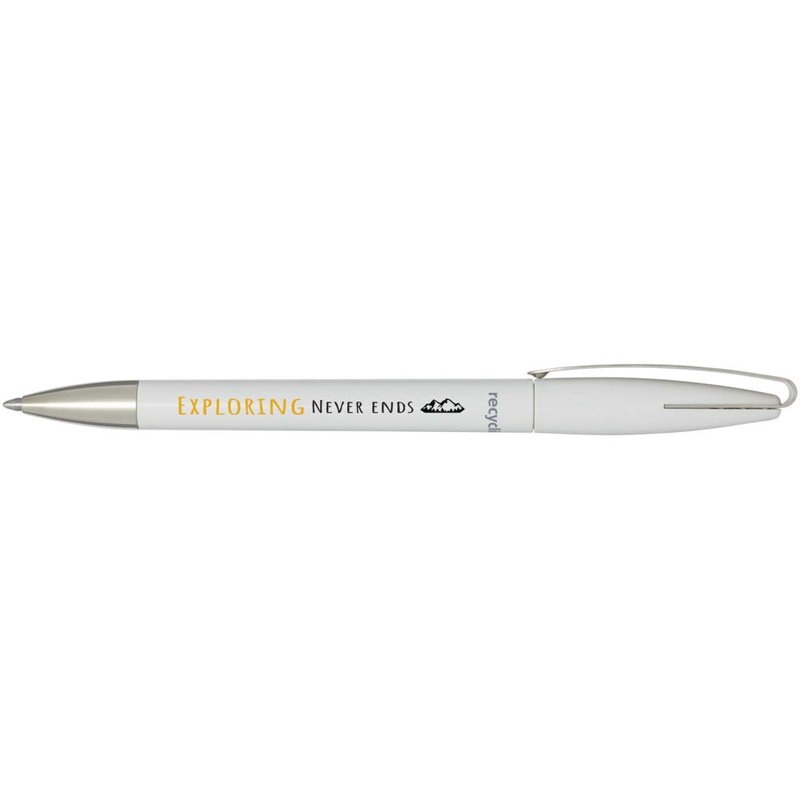 Balpen met de houder en clip van gerecycled plastic en de punt van roestvrij staal. Inktkleur: Blauw. Schrijflengte: 3000 meter. Stiftmaat: 1,00 mm. Gemaakt in Duitsland.