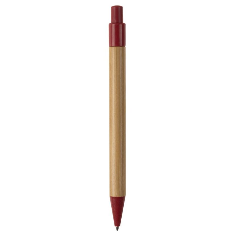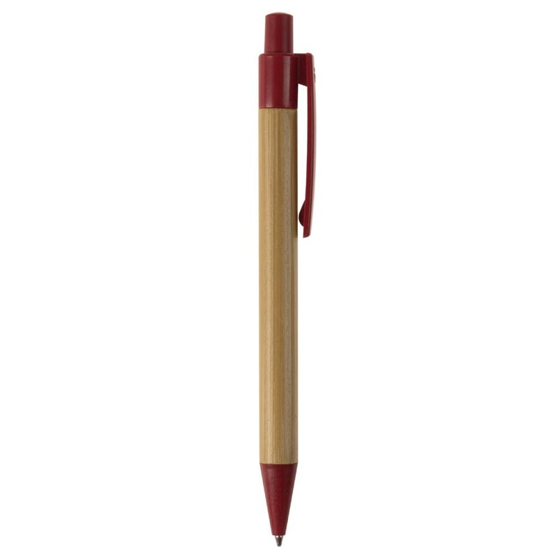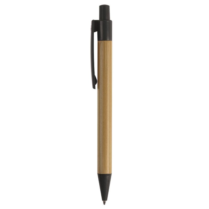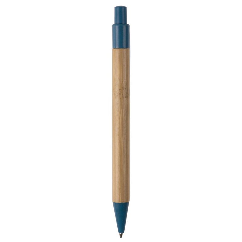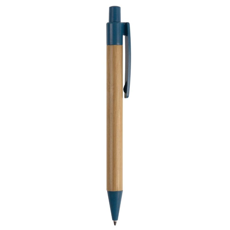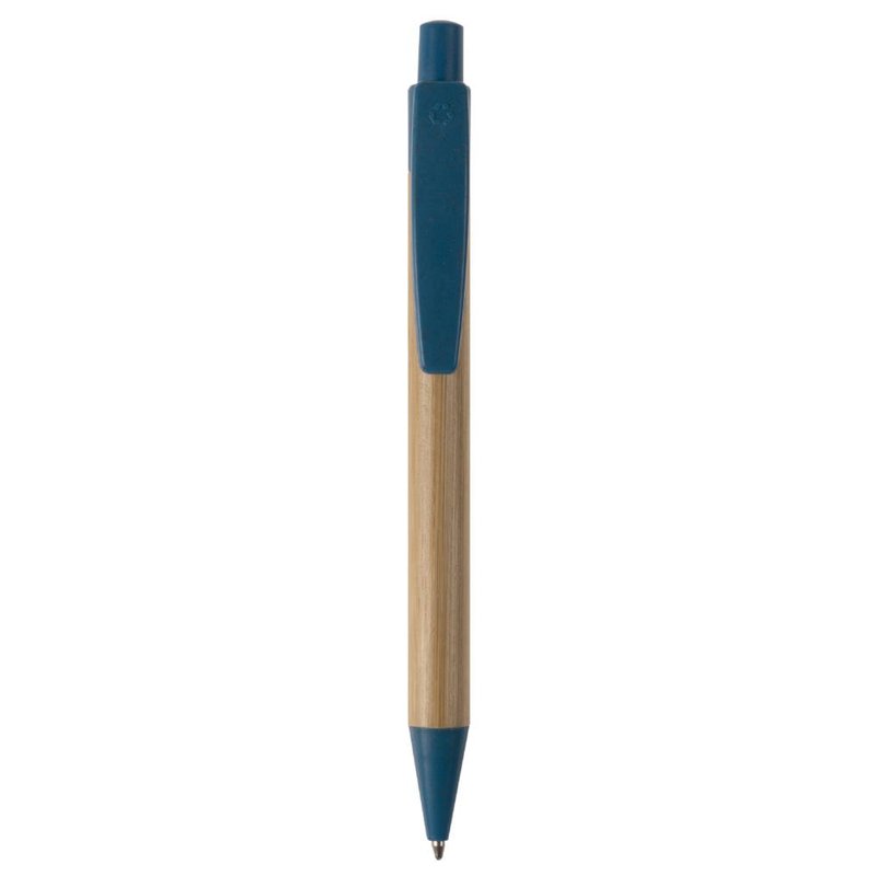 Balpen van bamboe materiaal met een clip, drukker en punt gemaakt van tarwestro. Bevat een kunststof blauwschrijvende X20 vulling.