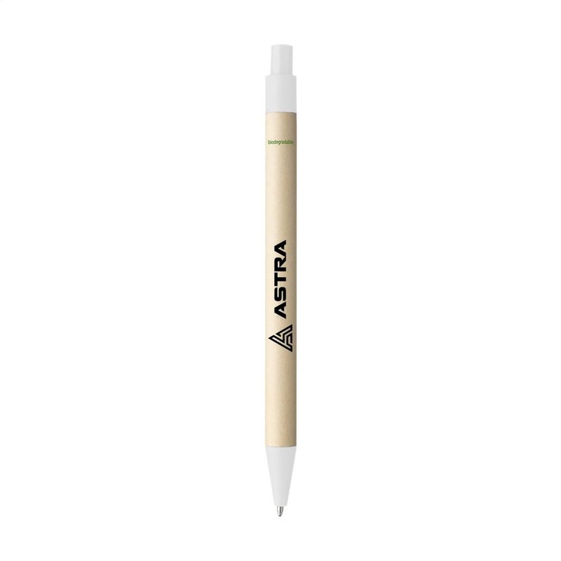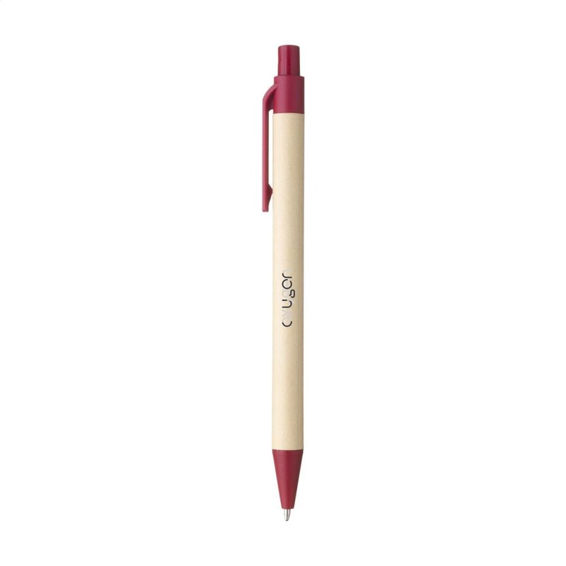 WoW! Eco-vriendelijke balpen met houder van gerecycled papier. De gekleurde clip, drukknop en het puntstuk zijn van biologisch afbreekbaar PLA. Met blauwschrijvende vulling.