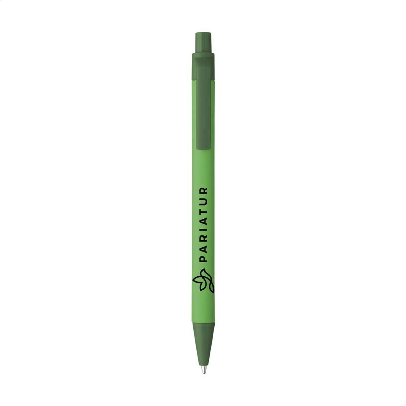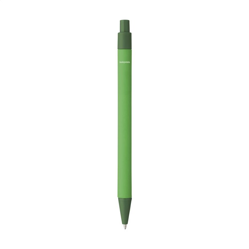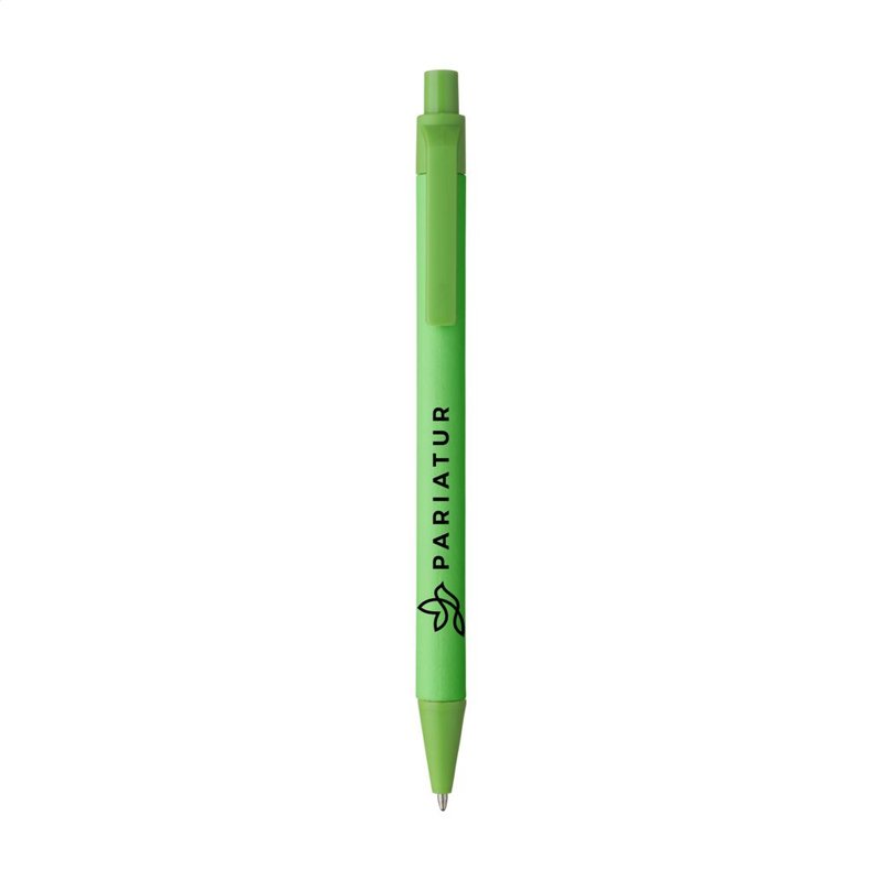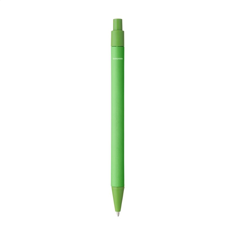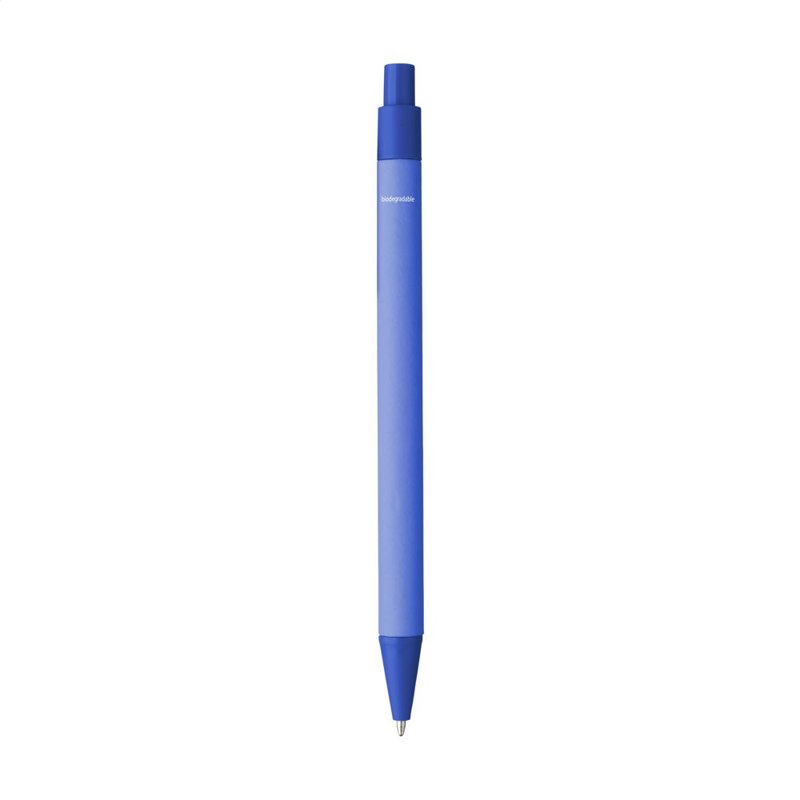 WoW! Eco-vriendelijke balpen met houder van gerecycled papier. De clip, drukknop en het puntstuk zijn van biologisch afbreekbaar PLA. Met blauwschrijvende vulling.