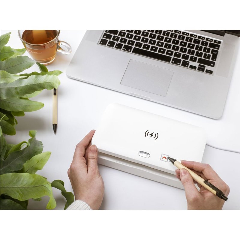 Eco-vriendelijke, blauwschrijvende balpen met houder van kurk. Het puntstuk, de top, drukknop en clip zijn gemaakt van 50% PP en 50% tarwestro. Gedeeltelijk biologisch afbreekbaar.