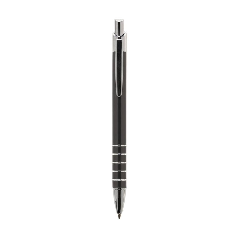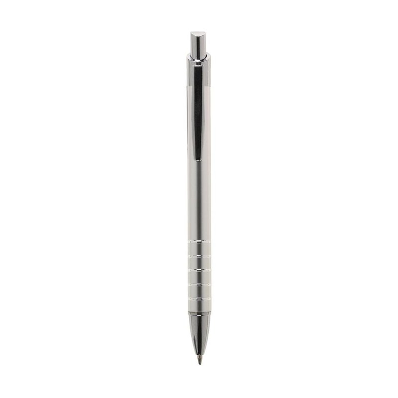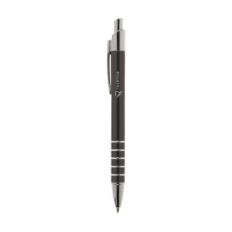 Solide en mooie blauwschrijvende balpen. Deze balpen is gemaakt van aluminium met een metallic look, metalen clip en tussenringen. Deze pen kunnen wij voorzien van een gravure(40x5 mm) op de houder.