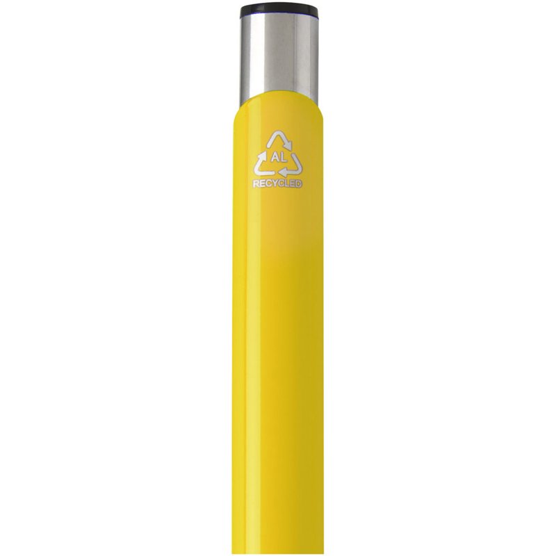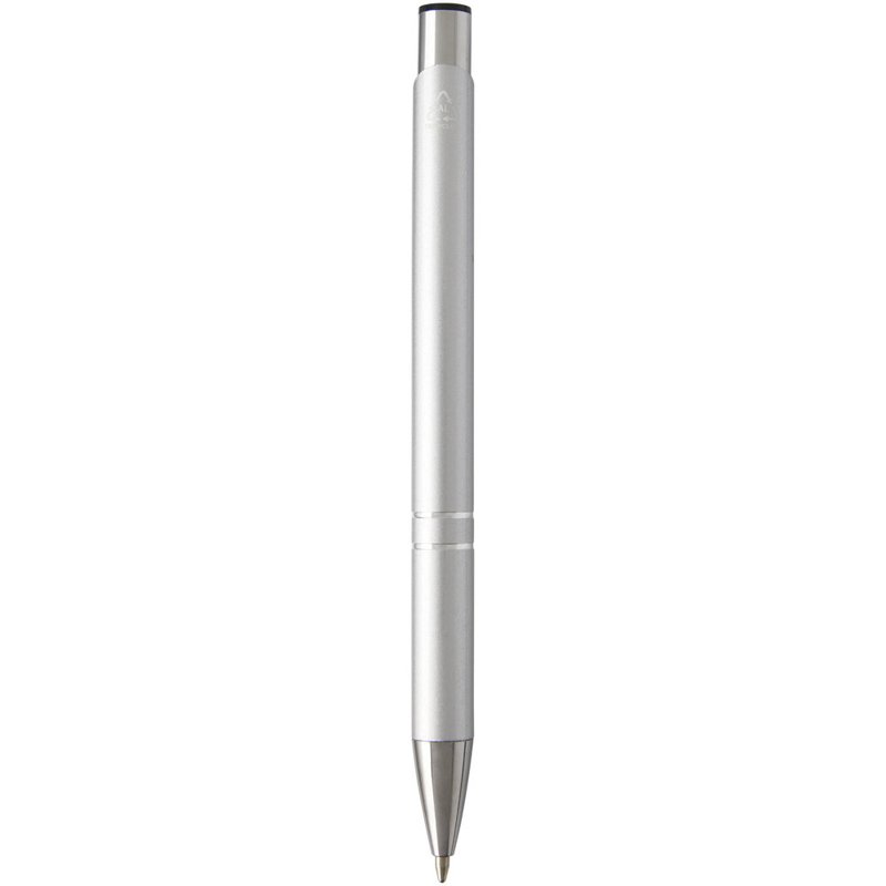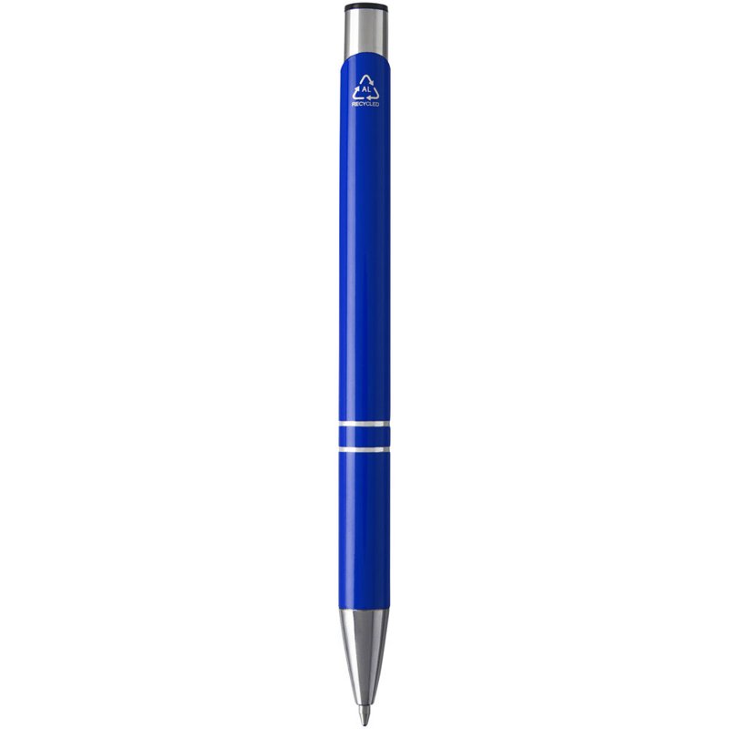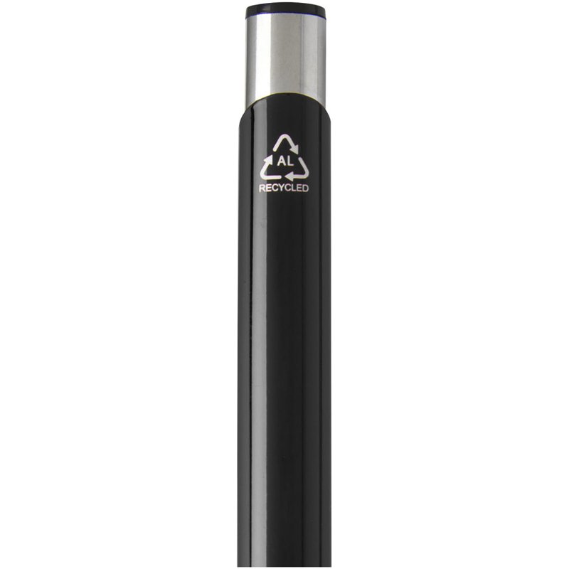 Balpen van gerecycled aluminium met een gelakte afwerking, een gepolijste glans en opvallende chromen details. Gerecycled aluminium vereist minder energie dan het produceren van aluminium uit grondstoffen, waardoor het een duurzamere optie is. Het vermindert ook de hoeveelheid afval op stortplaatsen en draagt bij aan het behoud van natuurlijke hulpbronnen met als doel de uitstoot van broeikasgassen te beperken. Zwarte inkt. Schrijflengte: 600 meter.