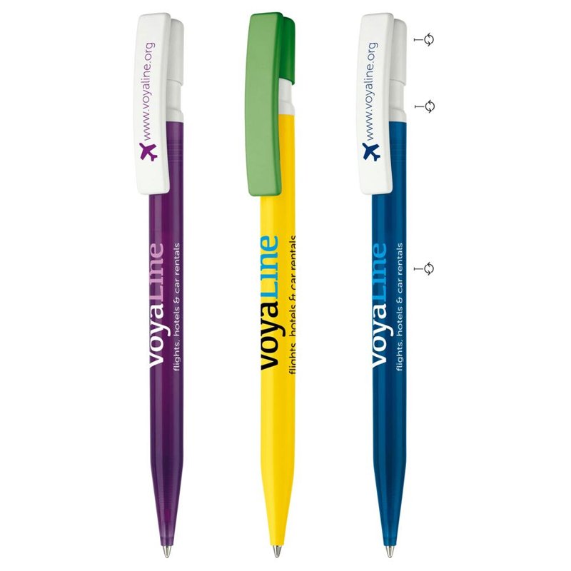 Toppoint designed balpen met boogclip. Zelf samen te stellen in hardcolour en transparante onderdelen. Met X-20 vulling en schrijfkleur naar keuze.