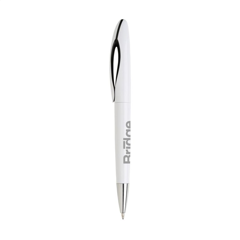 Blauwschrijvende balpen met fraai vormgegeven clip voorzien van een opvallend kleuraccent en draaikliksysteem.