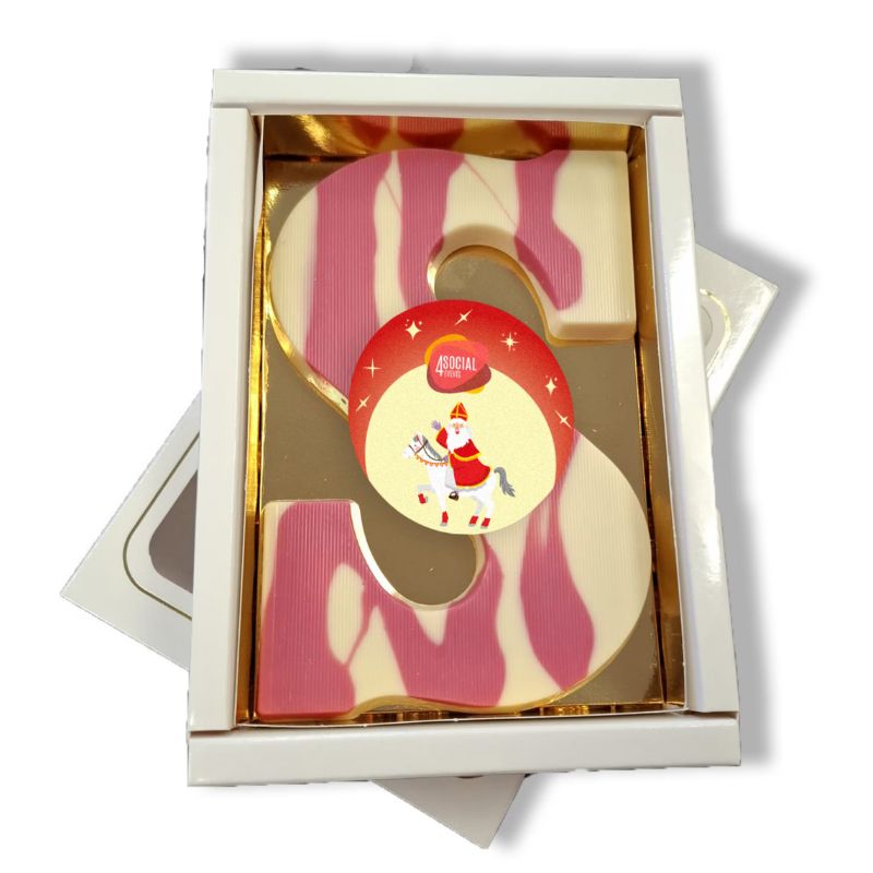 Een feestelijke traktatie in stijl! Deze roze/wit crème letter (ca. 150 gram) wordt geleverd in een elegant wit doosje, voorzien van een full colour sticker op de voorzijde. Ideaal om jouw merk of boodschap opvallend en smaakvol te presenteren.