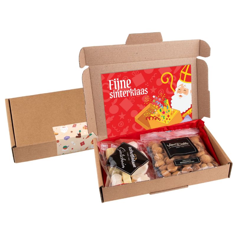 Maak je Sinterklaasfeest extra bijzonder met dit stijlvolle bruine brievenbusdoosje, speciaal gevuld voor de feestdagen! Binnenin vind je een zakje knapperige kruidnootjes én een kleurrijk assortiment zachte schuimpjes – de ultieme traktatie voor jong en oud. Een dubbelzijdig bedrukte A6-kaart geeft ruimte voor een persoonlijke boodschap, die dankzij het luxe ontwerp echt opvalt. De finishing touch? Een klassieke Sinterklaas sticker die het doosje feestelijk verzegelt en de voorpret al bij het openen laat beginnen. Perfect om cadeau te geven of om zelf van te genieten tijdens de gezelligste tijd van het jaar!