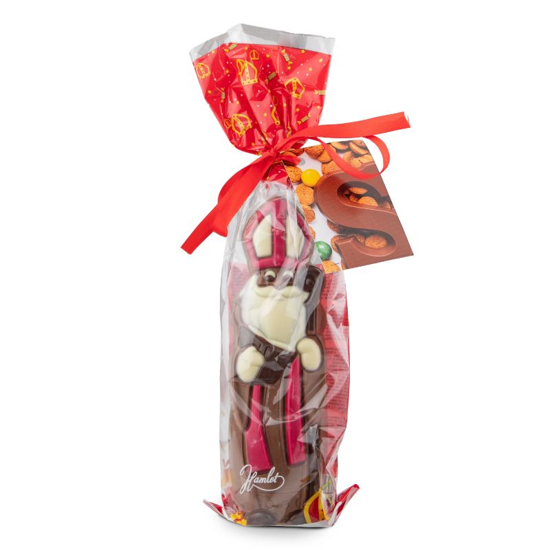 Holle melkchocolade Sinterklaaspop ca. 125 gram in een kleurrijk bedrukte klassieke toefzak. Voorzien van een full colour dubbelzijdig bedrukt kaartje.