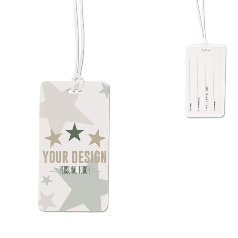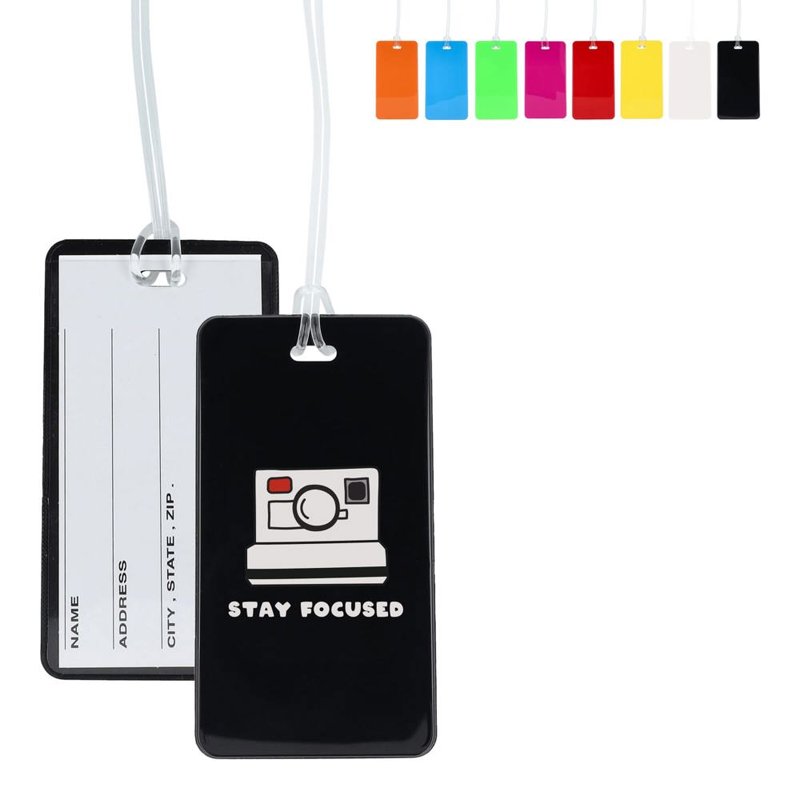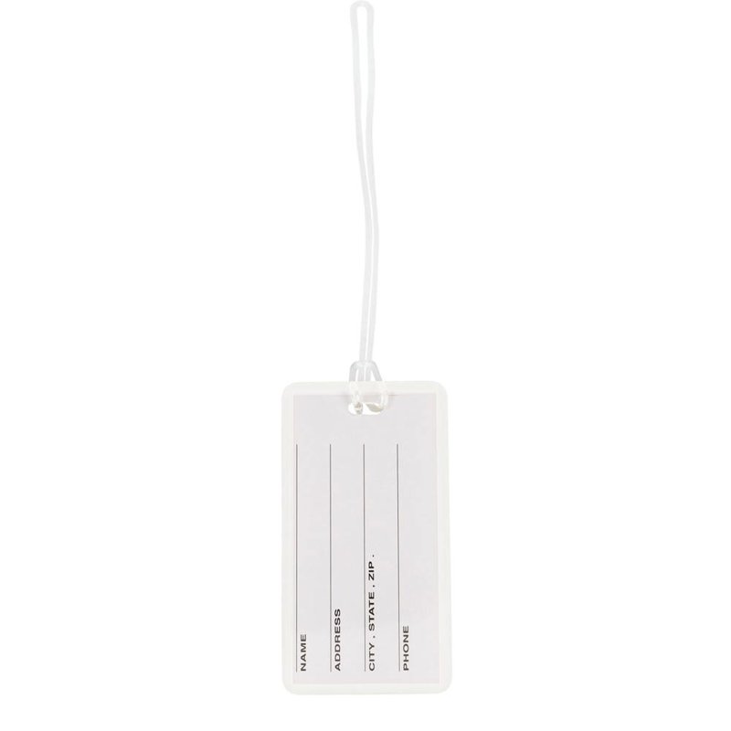 Flexibel bagagelabel van PP. In het label zit een uitneembaar kaartje waarop je je adresgegevens kan schrijven.