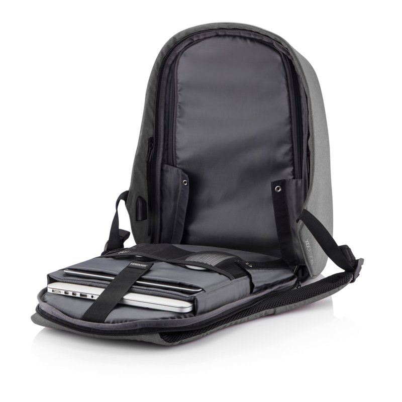 De Bobby Hero lijn is onze nieuwe generatie anti-diefstal rugzakken. Dit nieuwe model helpt u om altijd veilig, zorgeloos en georganiseerd te reizen. Het snijvaste en waterafstotende materiaal waar de tas van gemaakt is en de verborgen ritssluitingen & zakken houden uw spullen veilig terwijl u onderweg bent. Bobby Hero is ook een heel handige rugzak met functies zoals een geïntegreerde USB-laadpoort, oplichtende veiligheidsstrips en een bagageband. Aan de binnenkant zitten gewatteerde compartimenten voor een 17" laptop, tablet tot 12,9" en al uw andere spullen. De rugzak is gemaakt van 35 rPET (gerecyclede PET-flessen). Geregistreerd ontwerp®