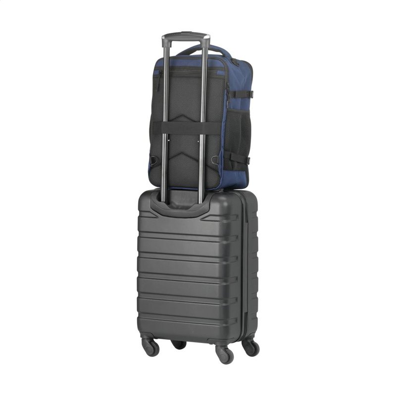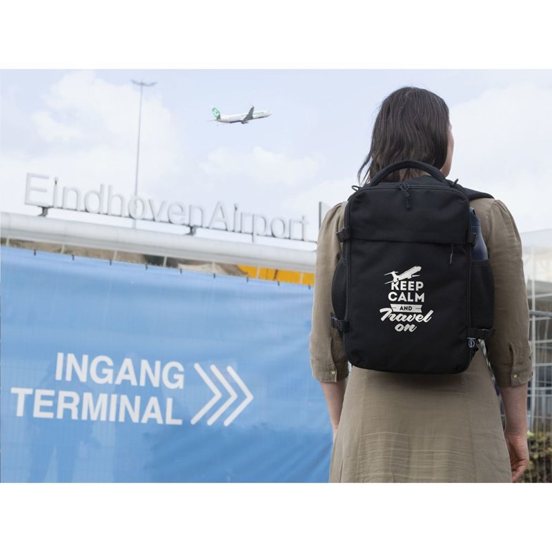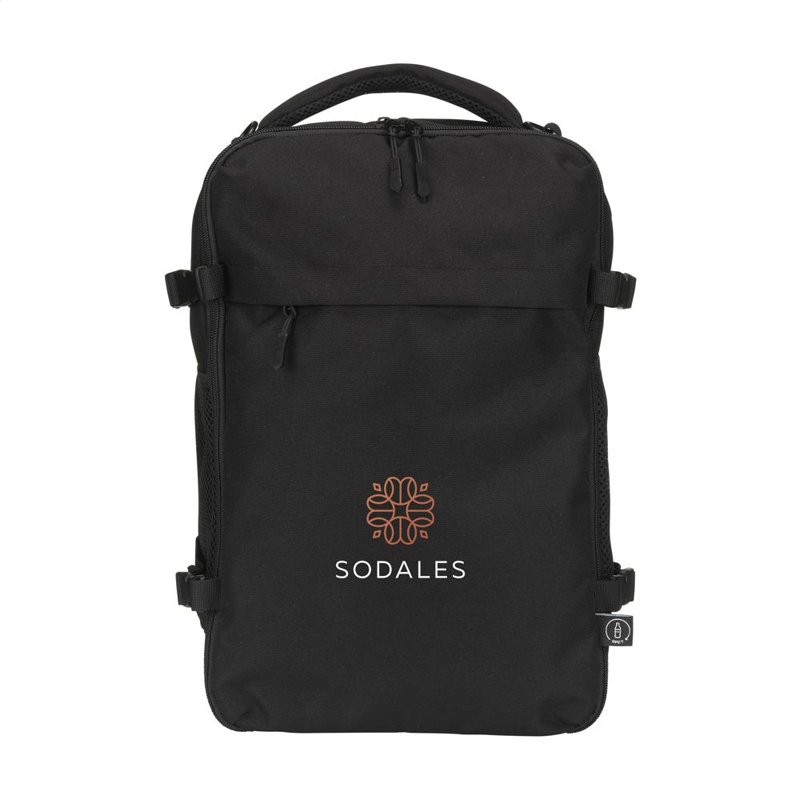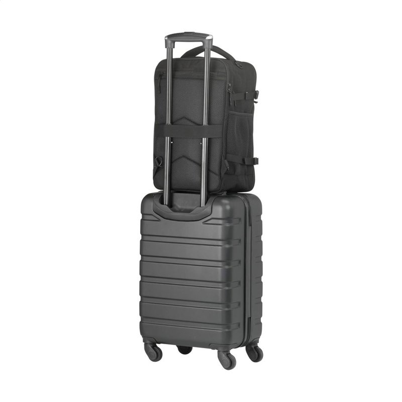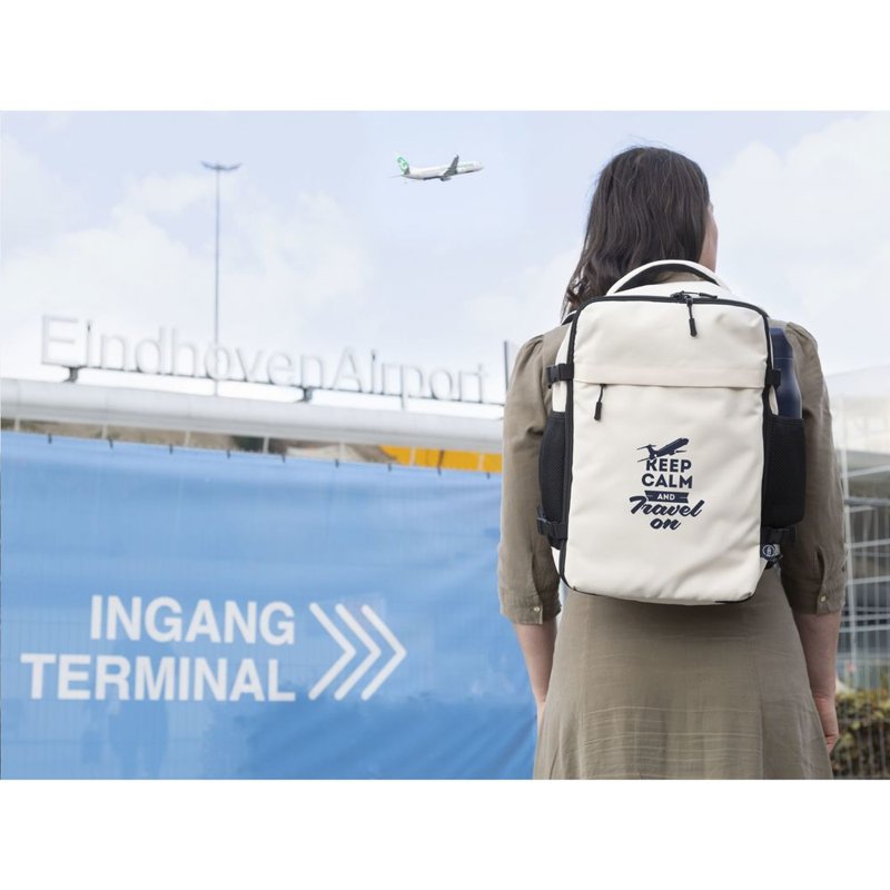 Hij past eenvoudig onder de stoel van elk vliegtuig. Met een inhoud van ca. 20 liter biedt de rugzak verrassend veel opbergruimte, terwijl het lichte gewicht het dragen comfortabel maakt. De buitenzijde is gemaakt van stevig gerecycled RPET 900D polyster. Geheel gevoerd met gerecycled RPET 210D polyester. Het ruime hoofdvak, met rits en dubbele ritstrekkers, is ideaal voor kleding en voorzien van een handige organiser voor telefoon, persoonlijke documenten en andere essentials.