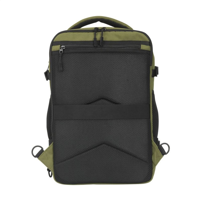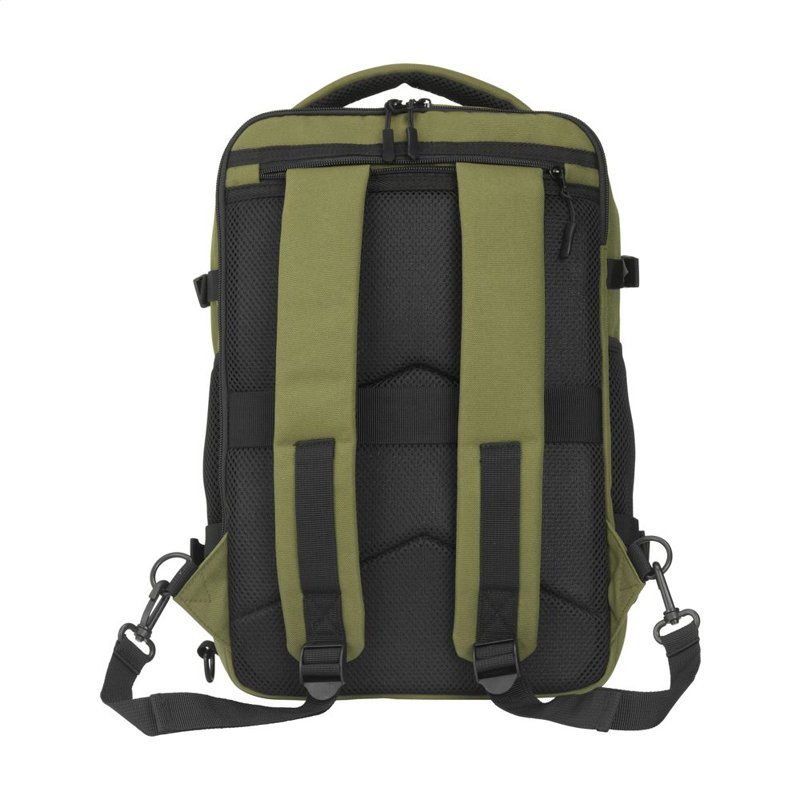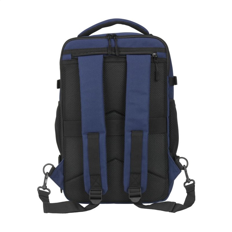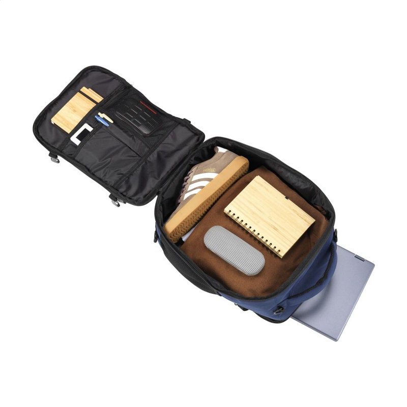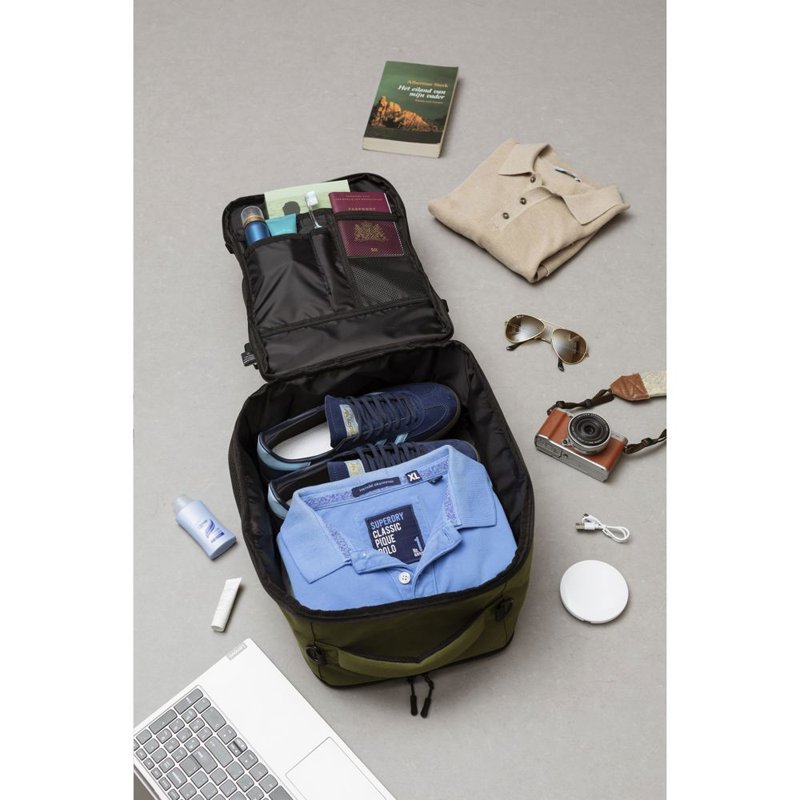 Hij past eenvoudig onder de stoel van elk vliegtuig. Met een inhoud van ca. 20 liter biedt de rugzak verrassend veel opbergruimte, terwijl het lichte gewicht het dragen comfortabel maakt. De buitenzijde is gemaakt van stevig gerecycled RPET 900D polyster. Geheel gevoerd met gerecycled RPET 210D polyester. Het ruime hoofdvak, met rits en dubbele ritstrekkers, is ideaal voor kleding en voorzien van een handige organiser voor telefoon, persoonlijke documenten en andere essentials.