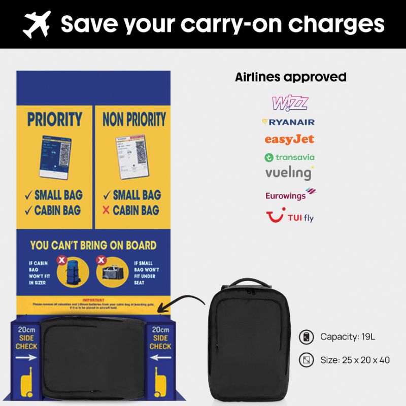 Het hoofdcompartiment bevat een elastische trolleyband voor extra functionaliteit, en met een capaciteit van 16L past het onder elke vliegtuigstoel. Perfect voor weekendtrips, deze rugzak voldoet aan de maximale gratis handbagage-eisen van budgetmaatschappijen, waardoor je geen extra kosten voor je tas hoeft te betalen.