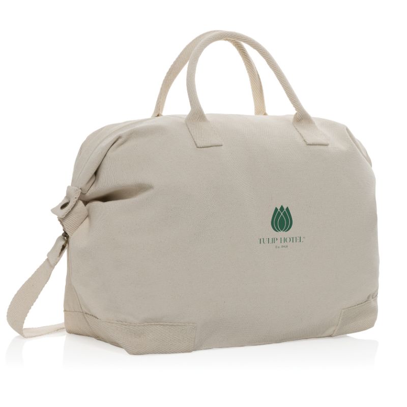 Deze luxe weekendtas is een stijlvolle en duurzame optie, gemaakt van 500 g/m² gerecycled katoenen canvas. Het heeft prachtige details, messing hardware en een ruim hoofdvak. Perfect voor mensen die op zoek zijn naar een reistas van hoge kwaliteit die weinig impact heeft. Met AWARE™ tracer die het echte gebruik van gerecycled katoen valideert. 2% van de opbrengst van elk verkocht Impact-product wordt gedoneerd aan Water.org.