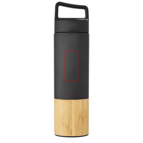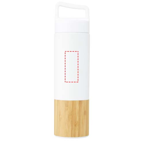 Koperen vacuüm geïsoleerde 18/8 roestvrijstalen fles die dranken enkele uren warm of koud houdt. Heeft een trendy bamboe detail en met het handvat boven op de deksel is ze makkelijk mee te nemen. De fles heeft een brede opening waardoor ze gemakkelijk te vullen en schoon te maken is. Getest en goedgekeurd volgens de Duitse voedselveiligheidswetgeving (LFGB) en getest op ftalaten volgens de REACH-regelgeving. De inhoud is 540 ml. Geleverd in een gerecycled kartonnen geschenkverpakking.