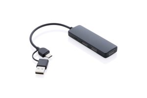 Bamboo USB 2.0 hub met 2 USB A-poorten en één type C-poort om de USB-poorten op uw computer uit te breiden. Met geïntegreerde PVC-vrije TPE-kabel.