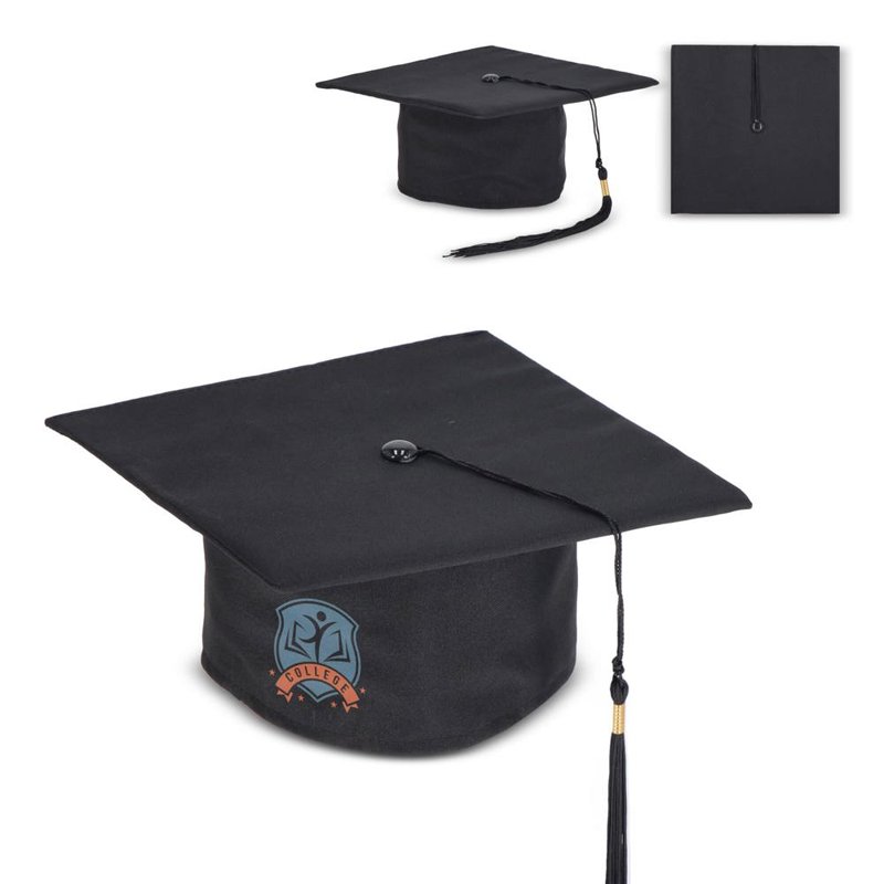 Vier je prestaties in stijl met deze klassieke afstudeerpet, die zorgt voor een stevige en comfortabele pasvorm. De platte, gestructureerde bovenkant is perfect voor de iconische afstudeer toss. Het ontwerp met zijnaden biedt ruimte voor persoonlijke opdrukken, waardoor het een opvallend accessoire is voor elke ceremonie.