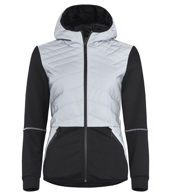 Een licht gewatteerd jack met moderne snit. Kleur 949 heeft grote reflecterende vlakken voor extra zichtbaarheid. De rits aan de voorzijde en de twee zijzakken zijn waterdicht Verder is deze afgewerkt met een doorvoer voor een koptelefoon en een eenvoudig te verwijderen label.<br />Materiaal: 100% spun dyed polyester, 100% polyester, met reflecterende coating.<br />Kwaliteit: 280 g/m².<br />Geslacht: women