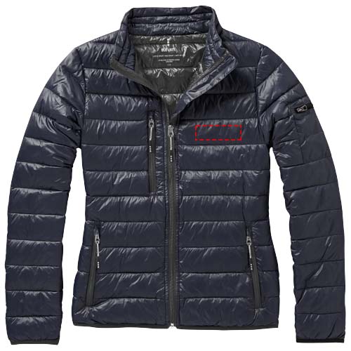 De jas is voorzien van hand- en borstzakken met rits. Zak met rits op de mouw is geschikt voor decoratie. Elastiek bij de manchetten en de onderzijde van het jack. 'easy grip' ritstrekker (met tweede set in antraciet). Stormflap aan binnenzijde met kinstuk. Waterafstotend, ademend en winddicht. Reflecterend logo op achterzijde. Licht gewicht isolerende jas. Kan alleen of in combinatie met de Labrador jas gedragen worden. 100% Nylon, 20D. 80/20 Down, 115 gsm.