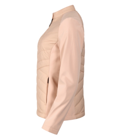 combinatie van gewatteerde en softshell stof , snit met zijstukken, opstaande kraag met drukknoop, rits over de hele lengte, zijzakken met spiraalrits, binnenzak met rits op borst , toegang voor branding in achtervoering<br /><br />- Grammage: 250 g/m²<br />- Samenstelling materiaal: 100 % polyamide<br />- Wasbaar op: 30 °C<br />- Label: geweven<br />- Minimum aantal stuks: 1 stuks<br />- Aantal stuks in een polybag: 1 stuks<br />- Behandelingen: water repellent finish